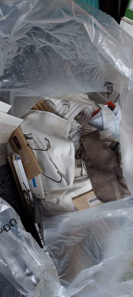 El viernes 1 de abril estuvimos en Percal recogiendo tres bolsas con perchas de muestras de tejidos y cortinas.