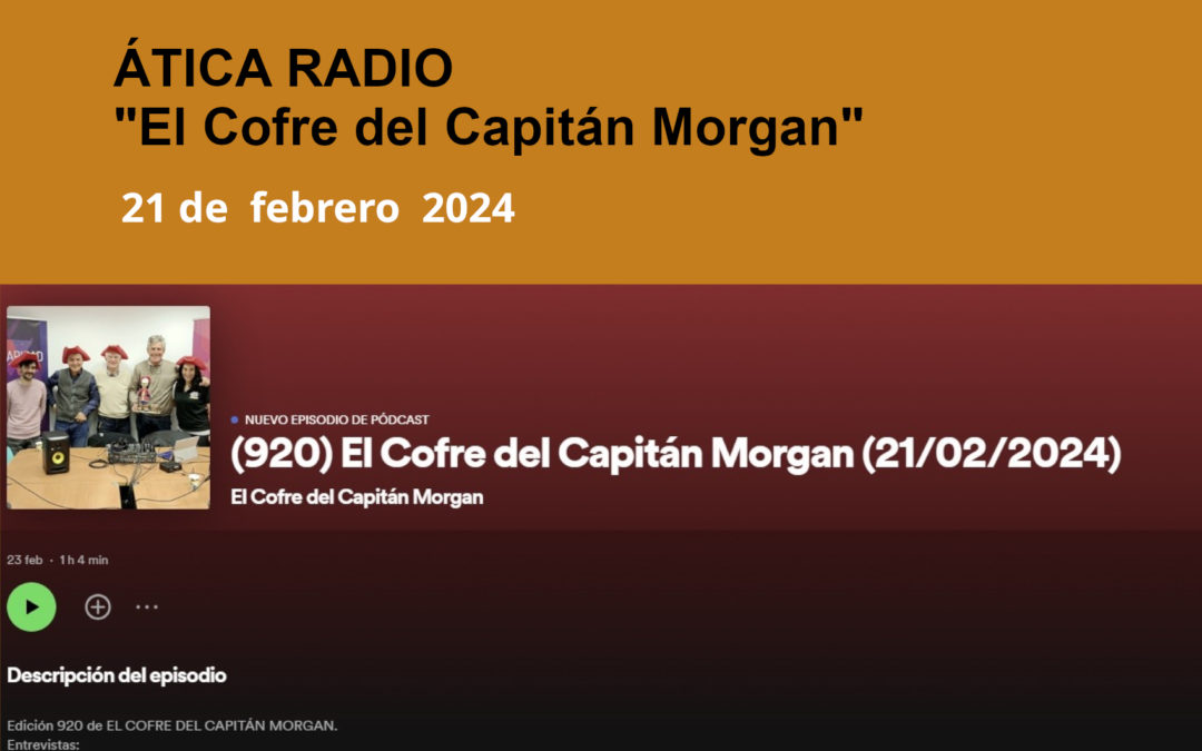 Conversación en el Programa “el Cofre del Capitán Morgan” de Ática Radio, el día 21 de febrero de 2024.