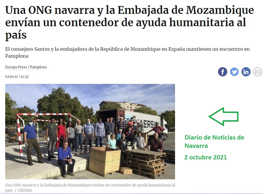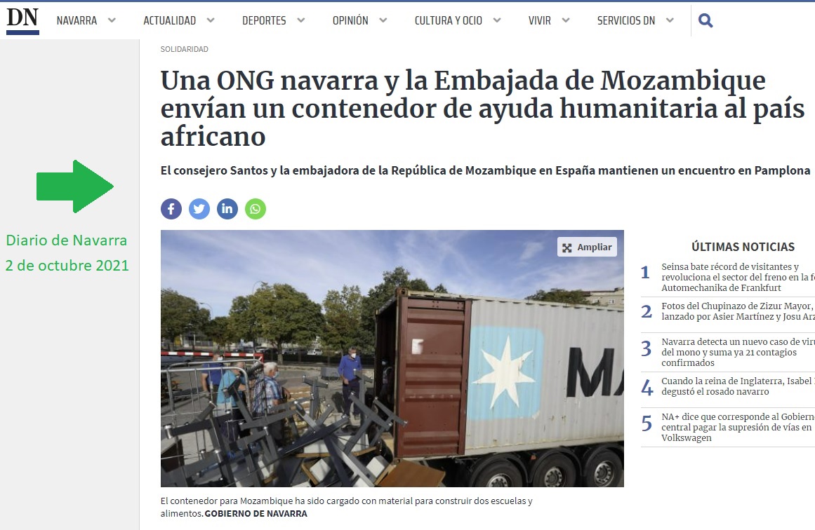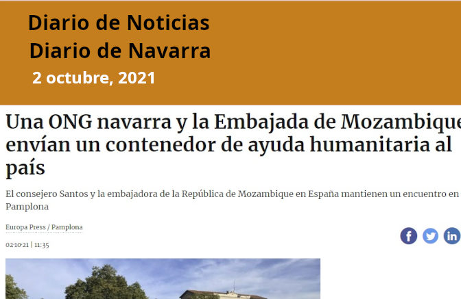 Envío a Mozambique Octubre 2021 Aquí tienes dos enlaces a periódicos. Para leer la noticia, pincha sobre cualquiera de ellos.