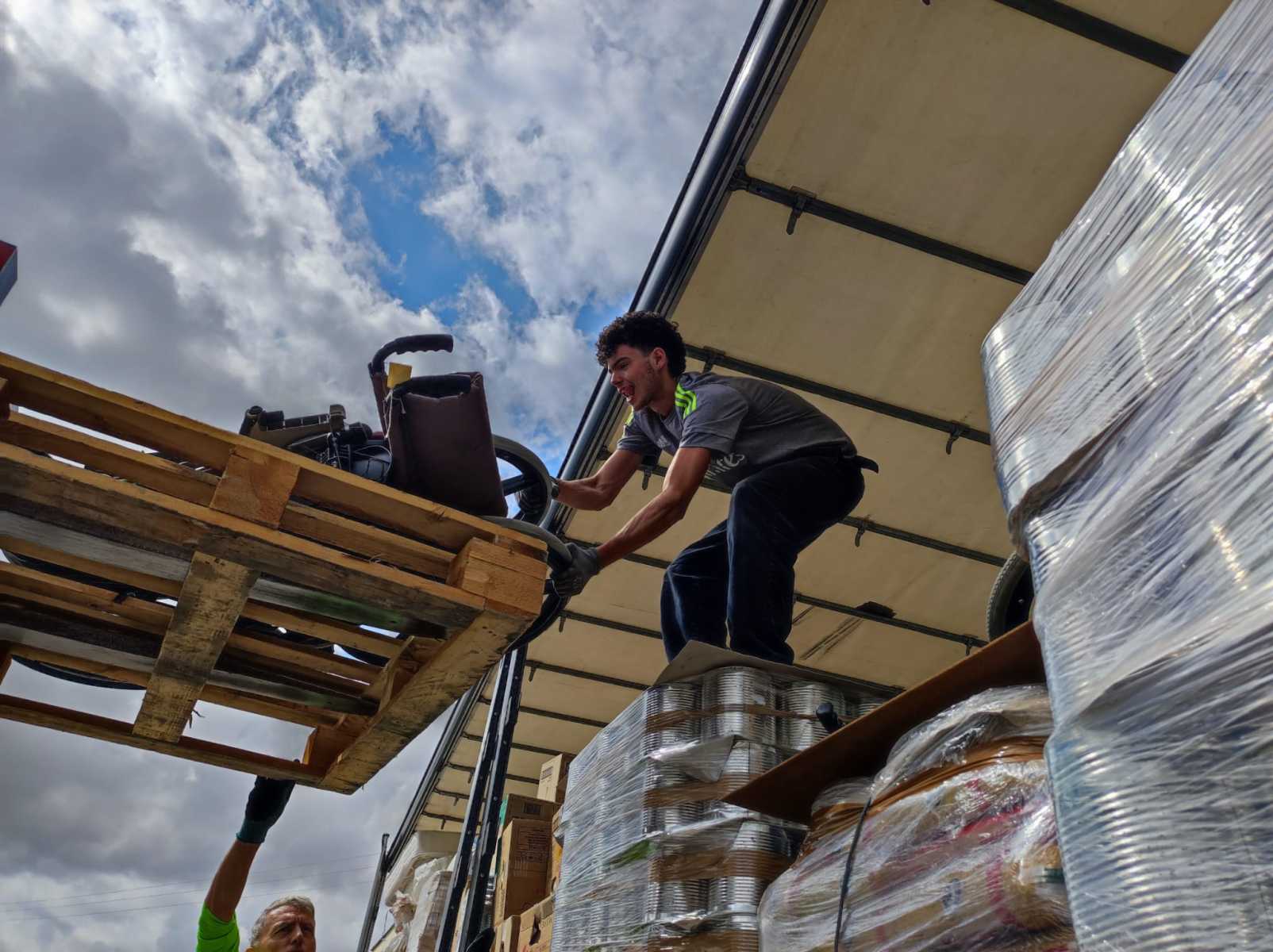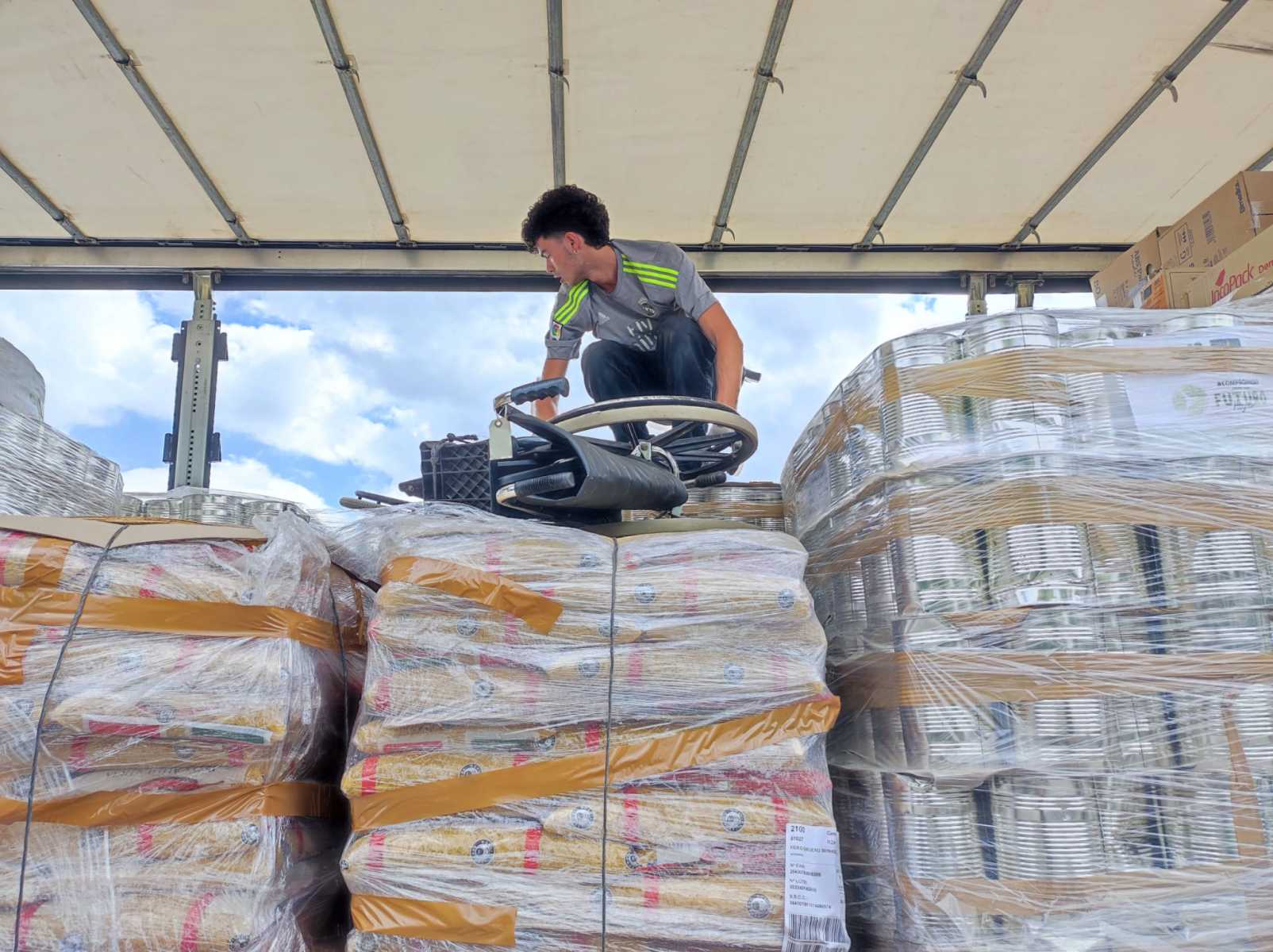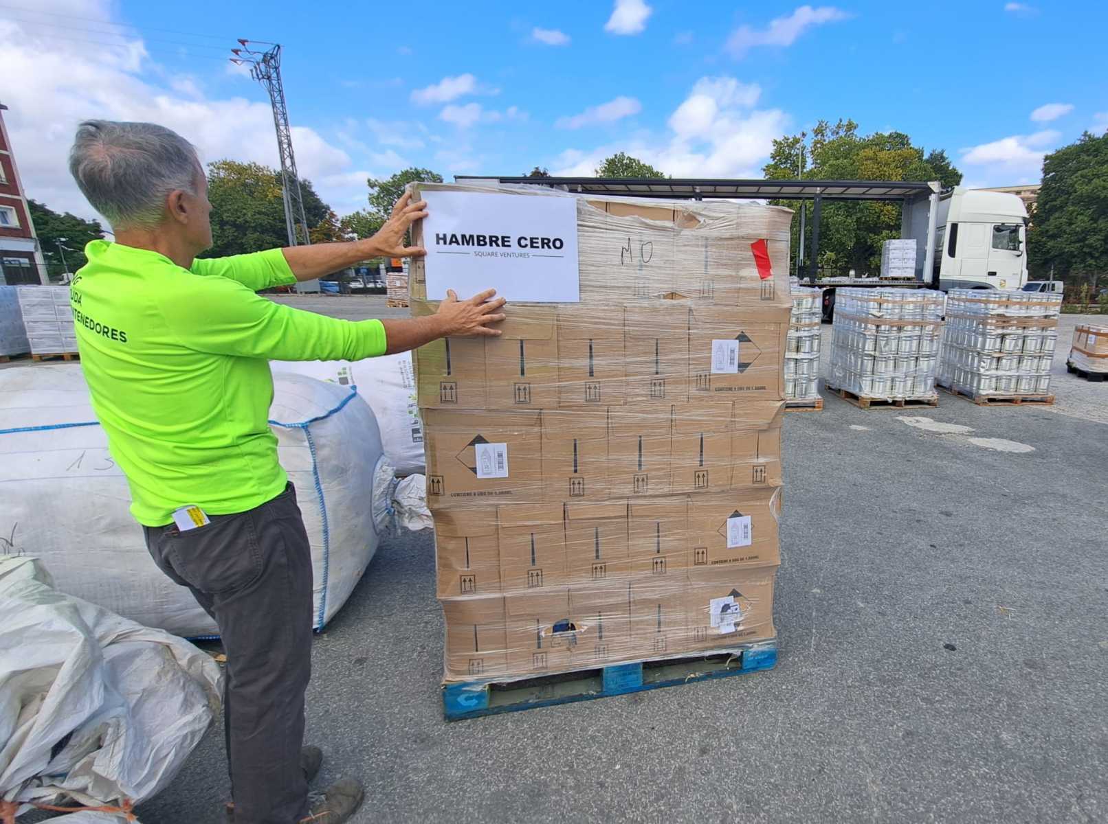 Un cargamento de ayuda humanitaria consistente básicamente en alimentos paletizados de diversos tipos y artículos hospitalarios (camas, camillas, sillas, ortopedia…)