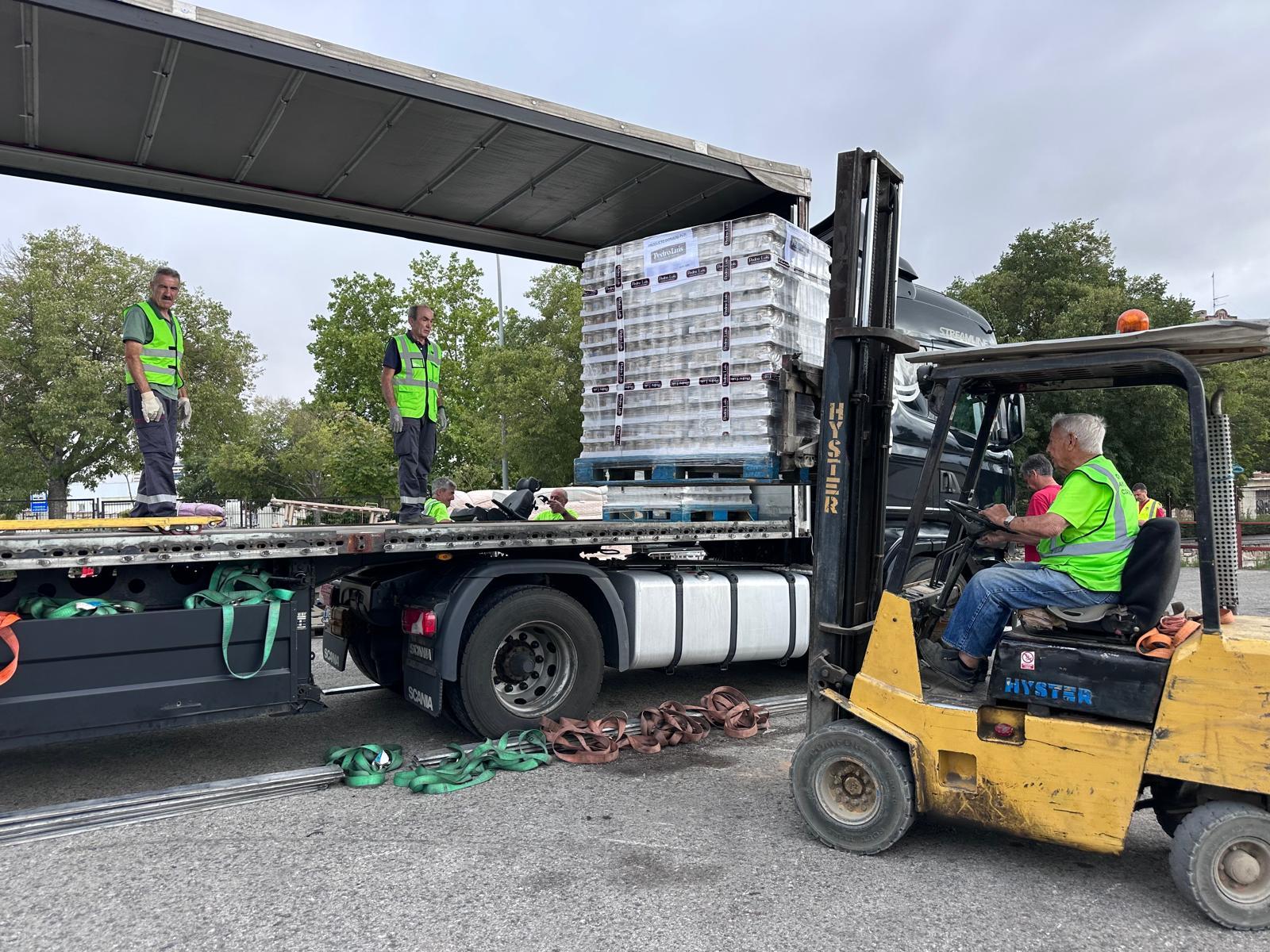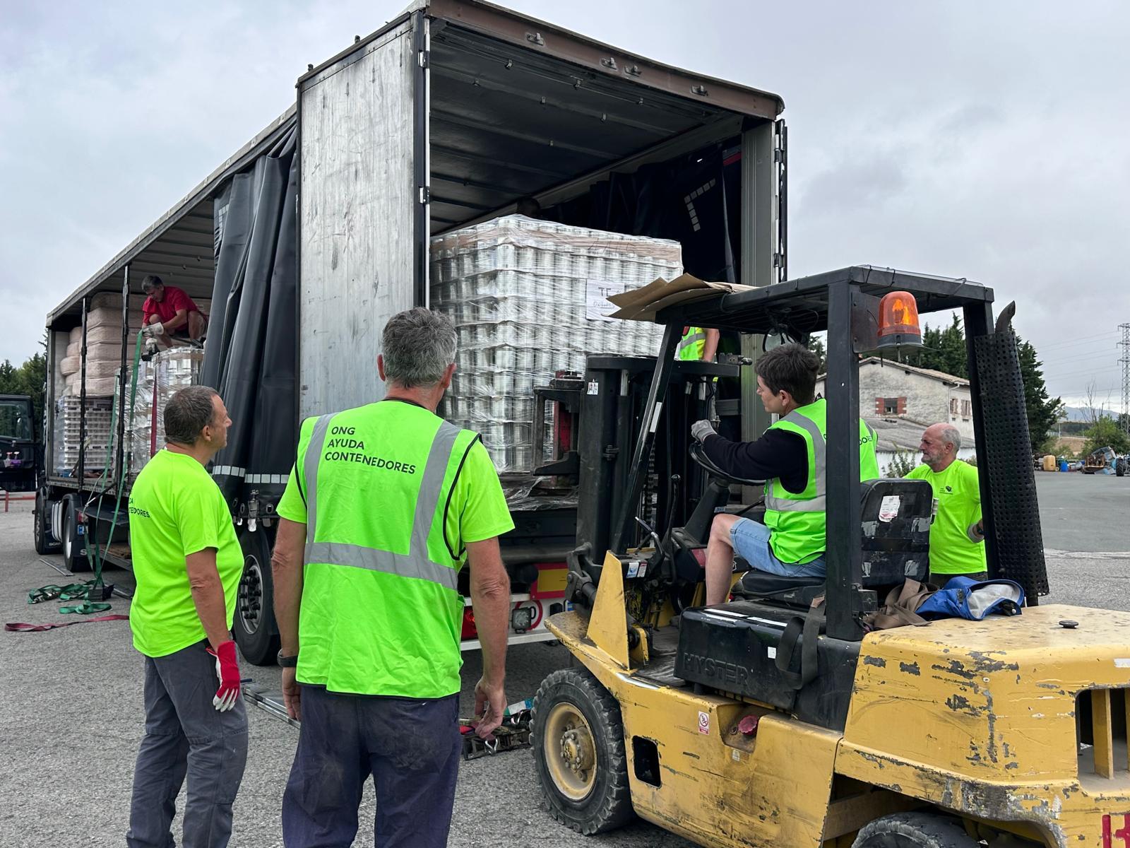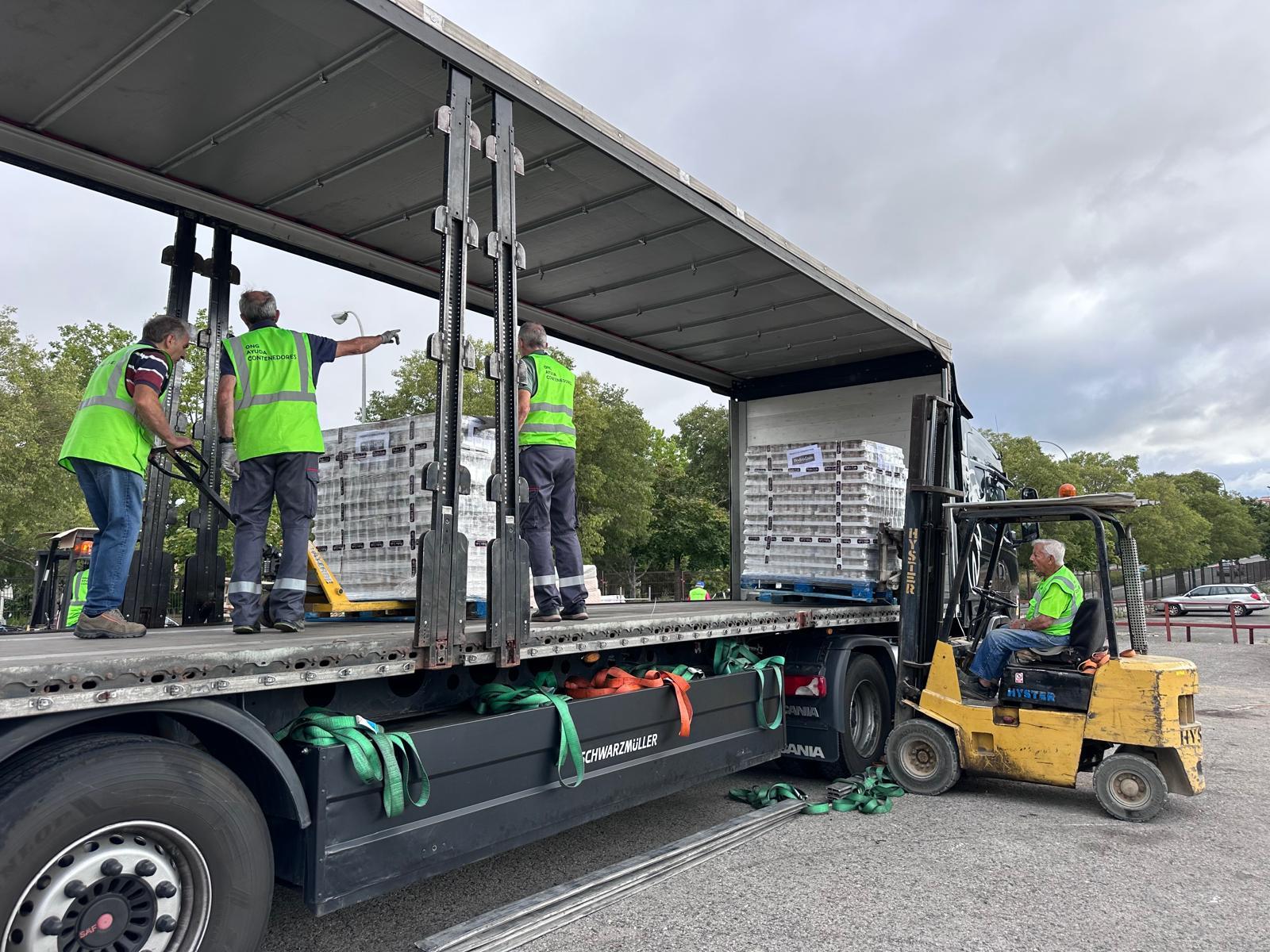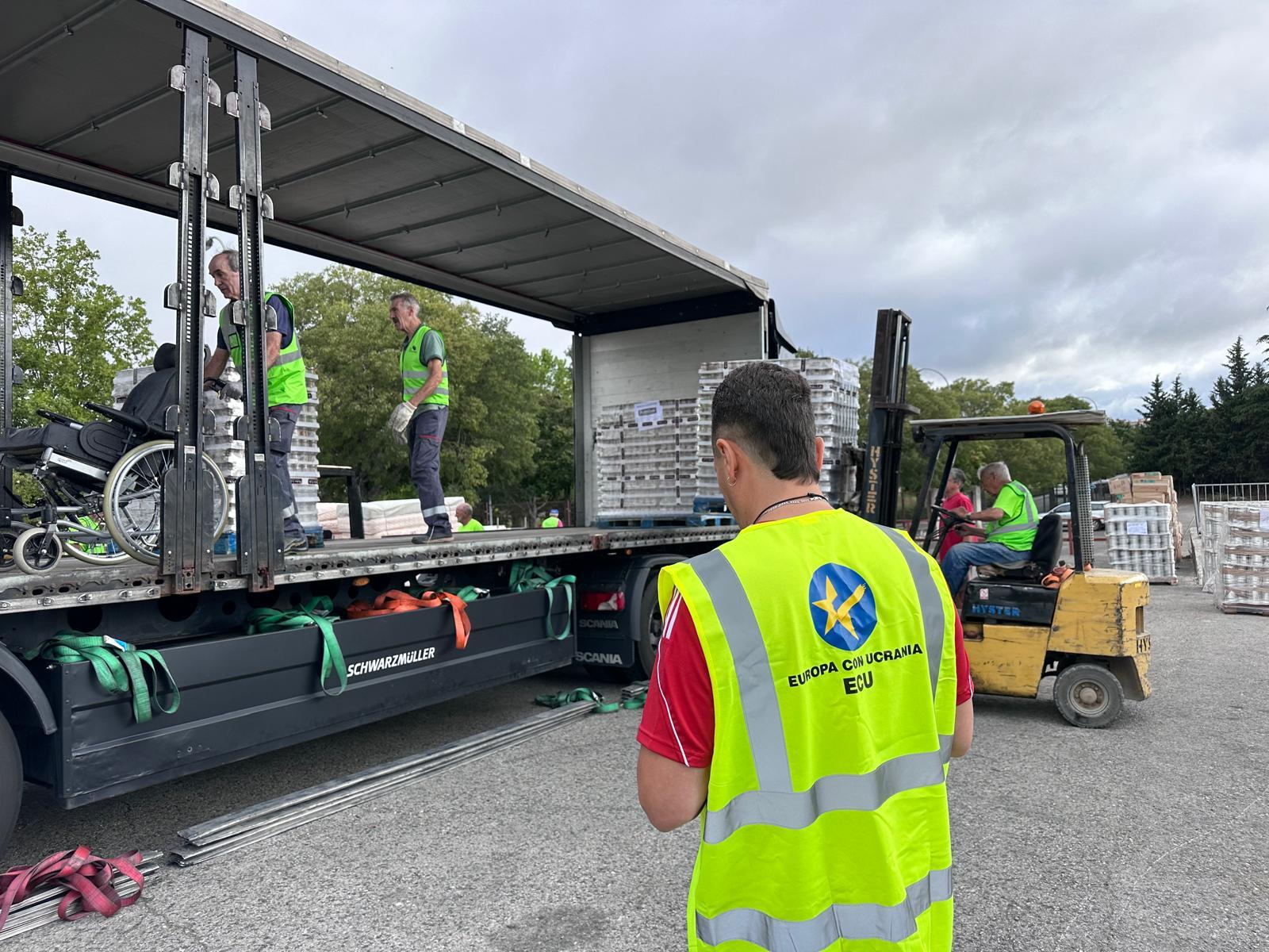El lunes 28 de julio de 2025, se ha cargado de nuevo un enorme camión tráiler, repleto de materiales de primera necesidad, básicamente alimentos, camillas, colchones, sillas de ruedas y productos de higiene, pañales y  compresas.