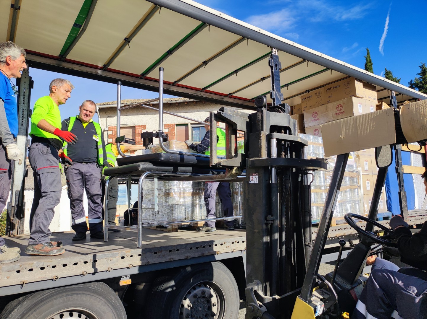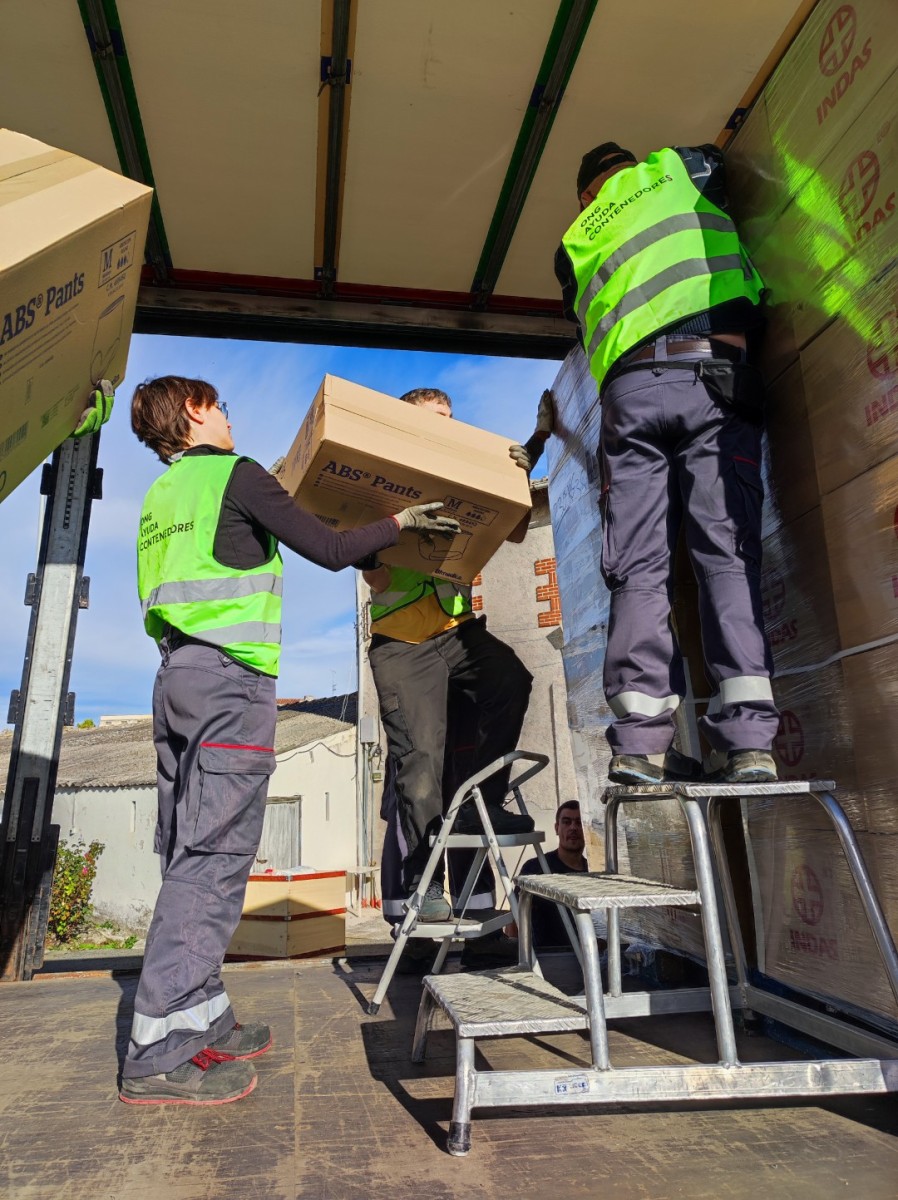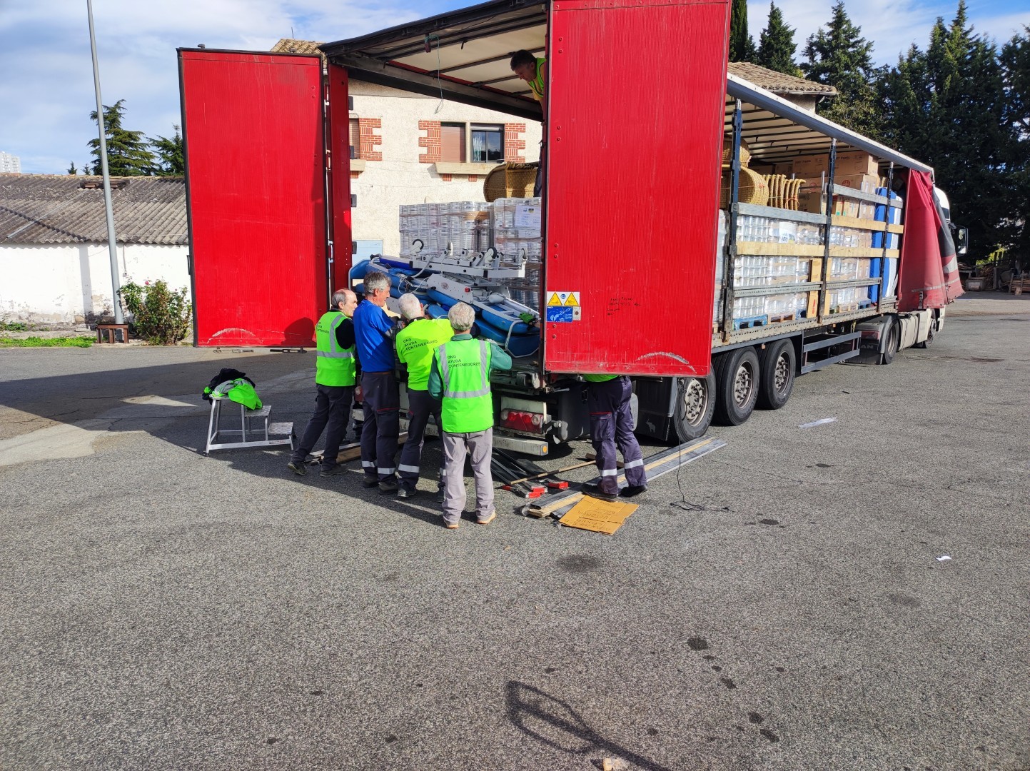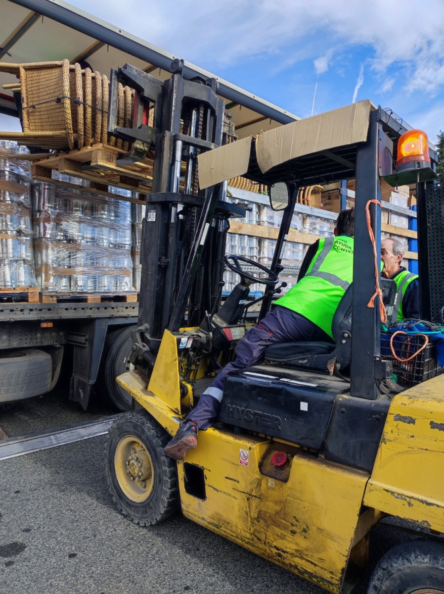 El martes 4 de octubre de 2025, se ha cargado de nuevo un enorme camión tráiler, repleto de materiales de primera necesidad, básicamente alimentos y camas, además de pañales, compresas, jabón y sillas de descanso.