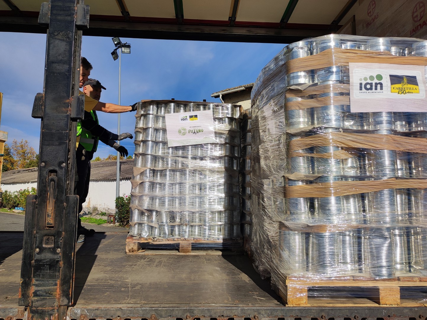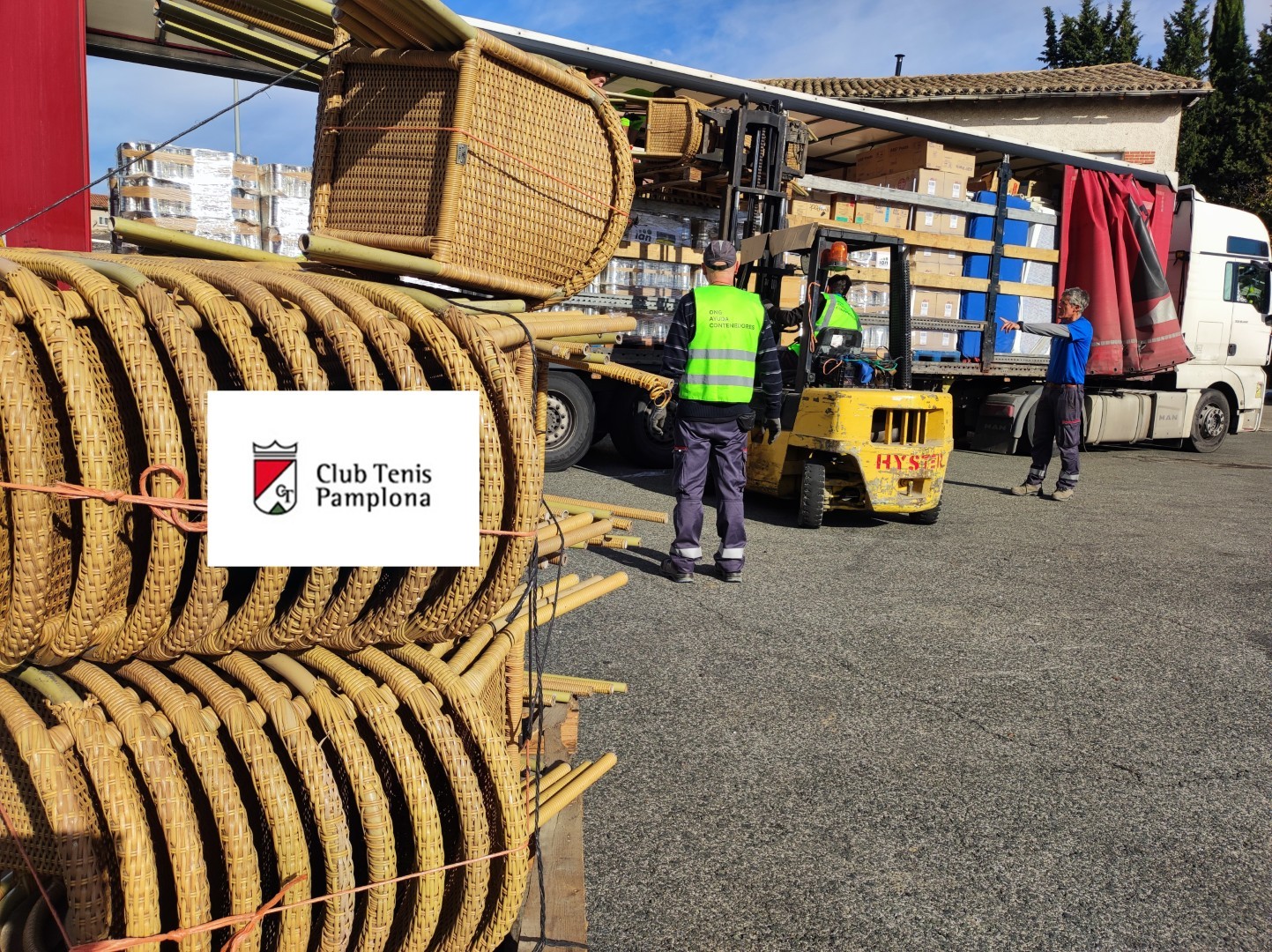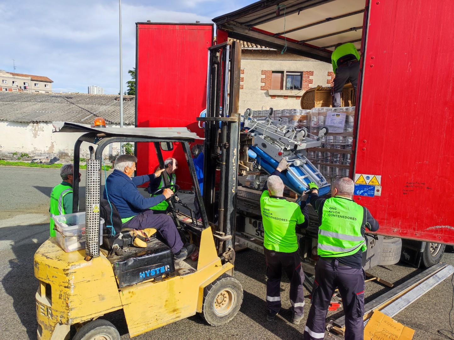 El martes 4 de octubre de 2025, se ha cargado de nuevo un enorme camión tráiler, repleto de materiales de primera necesidad, básicamente alimentos y camas, además de pañales, compresas, jabón y sillas de descanso.