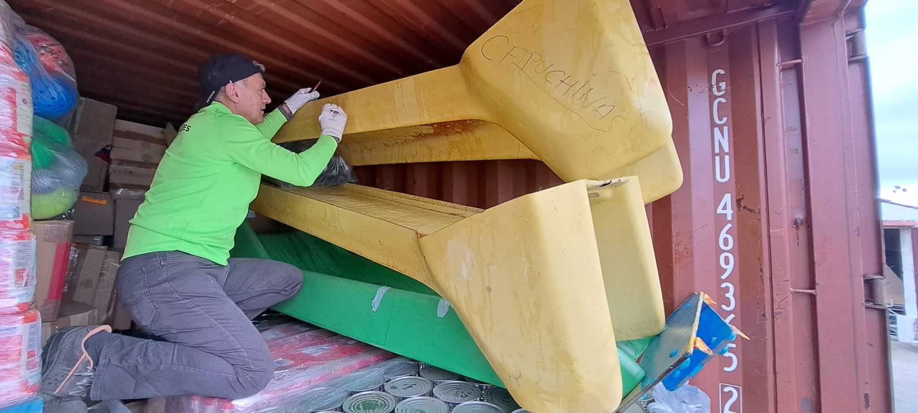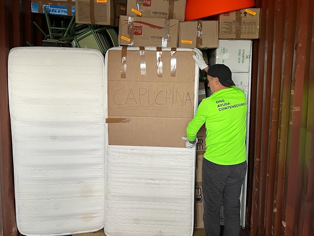 Para las Capuchinas se ha cargado equipos de medicina, mobiliario para guarderías, juguetes, bicis, ropa, zapatos, máquinas de coser, ordenadores comida..