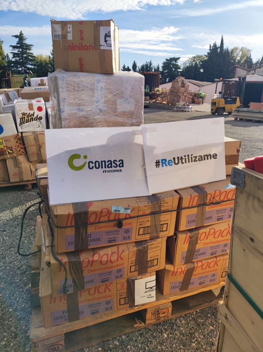 Se han cargado una gran cantidad de materiales de todo tipo para la dotación de escuelas y hospitales, ventanas, paneles solares, herramientas, odenadores, bicicletas, zapatos, de higiene, alimentos y otros materiales disponibles en la ONG.