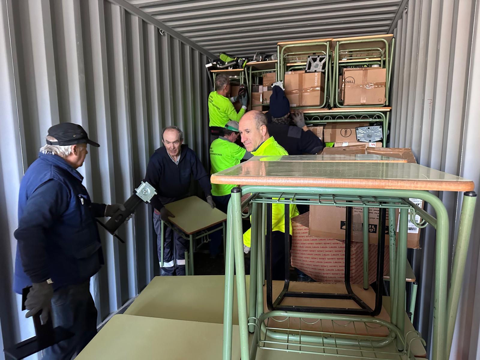 Como parte fundamental del proyecto se van a enviar 2 contenedores y el de este sábado es el primero. Son equipos informáticos y pupitres y sillas con las que se montarán 20 aulas tecnológicas en comunidades rurales indígenas y zonas vulnerables de 16 municipios del Alto Verapaz.