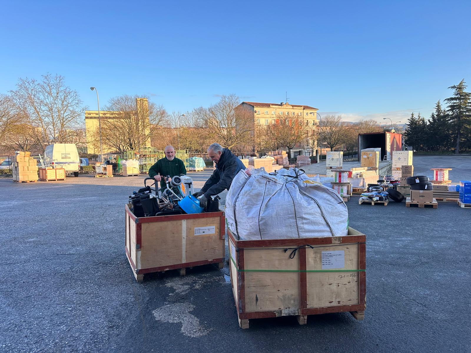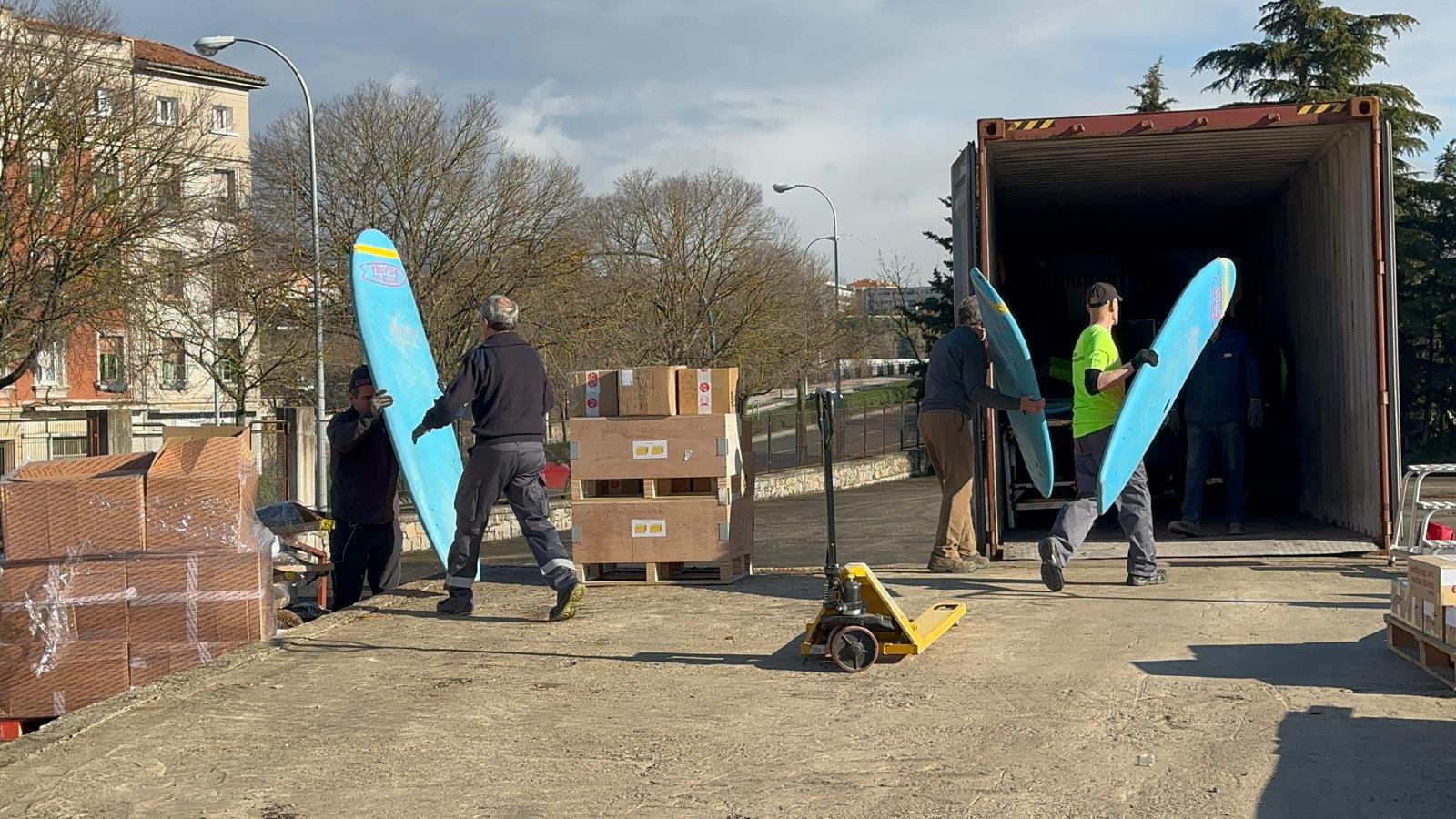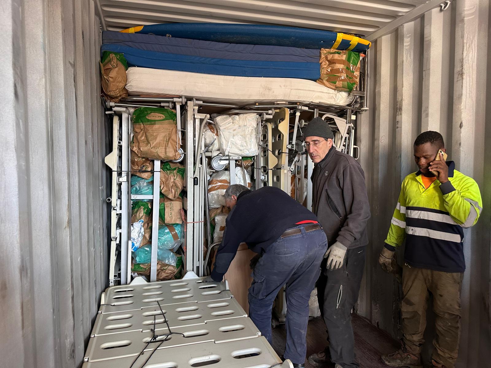 Se cargaron materiales hospitalarios y de higiene, mesas, sillas, ordenadores, calzado, tablas wind surf, herramientas, etc.