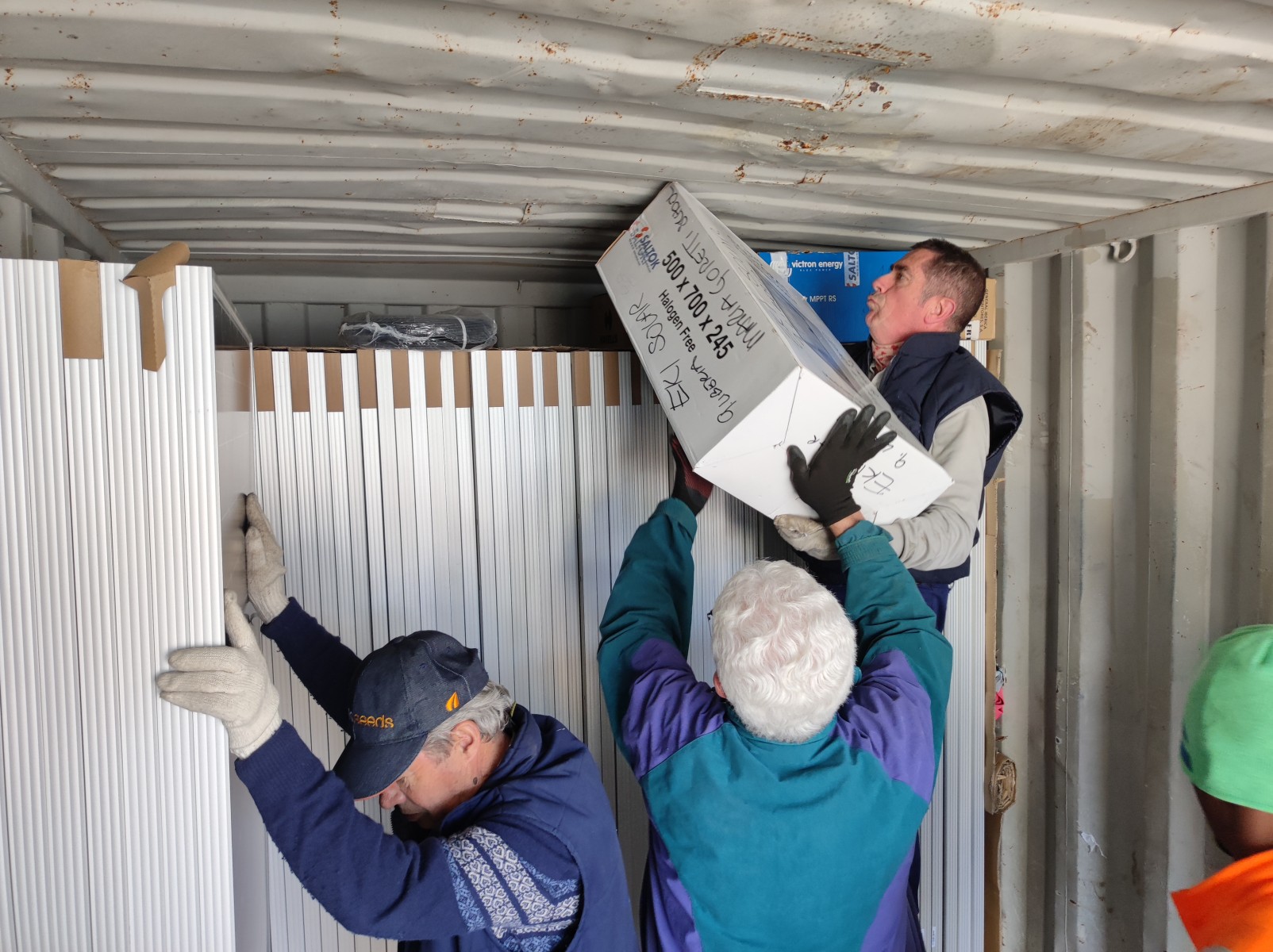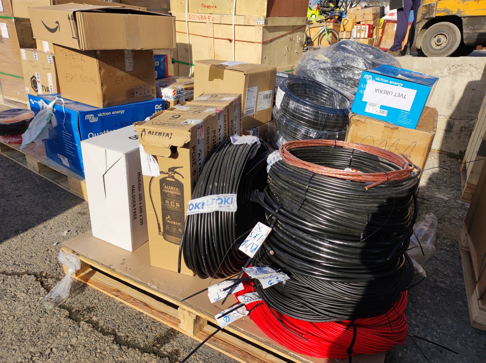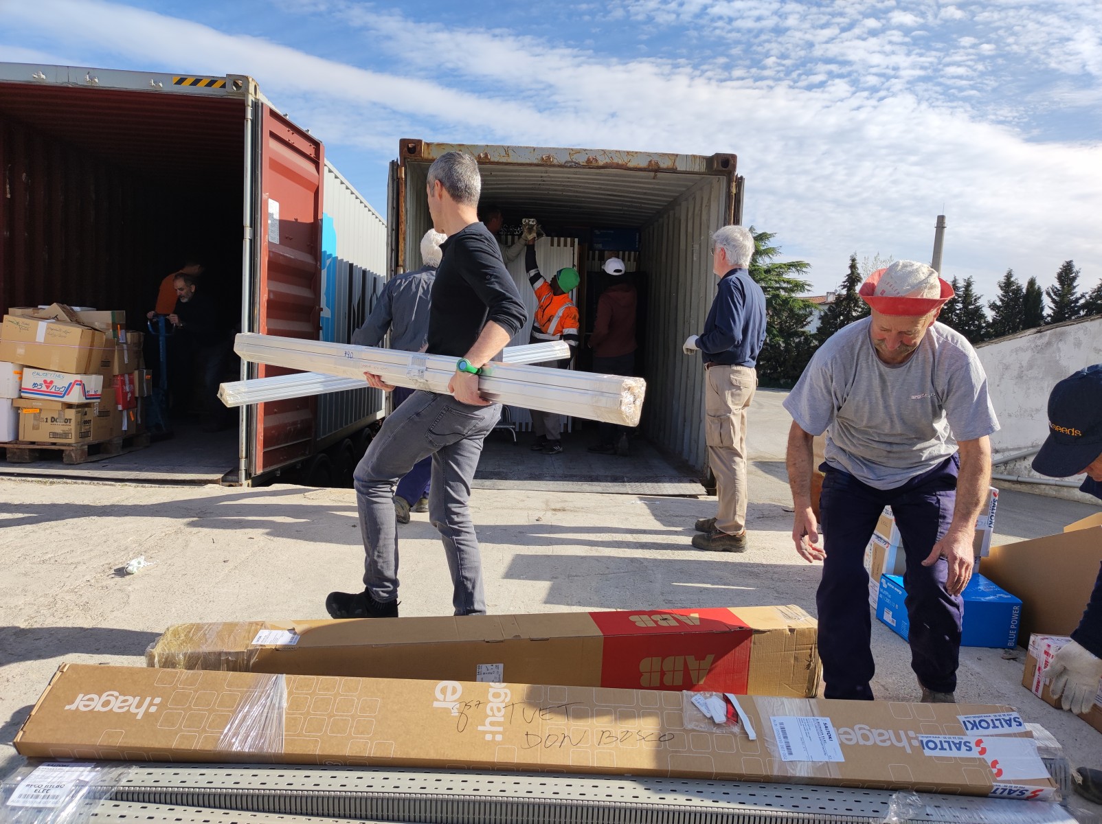 También se han enviado otros materiales fotovoltaicos para el centro de formación profesional de Salesianos. Como es habitual se ha completado la carga con algún otro material diverso.