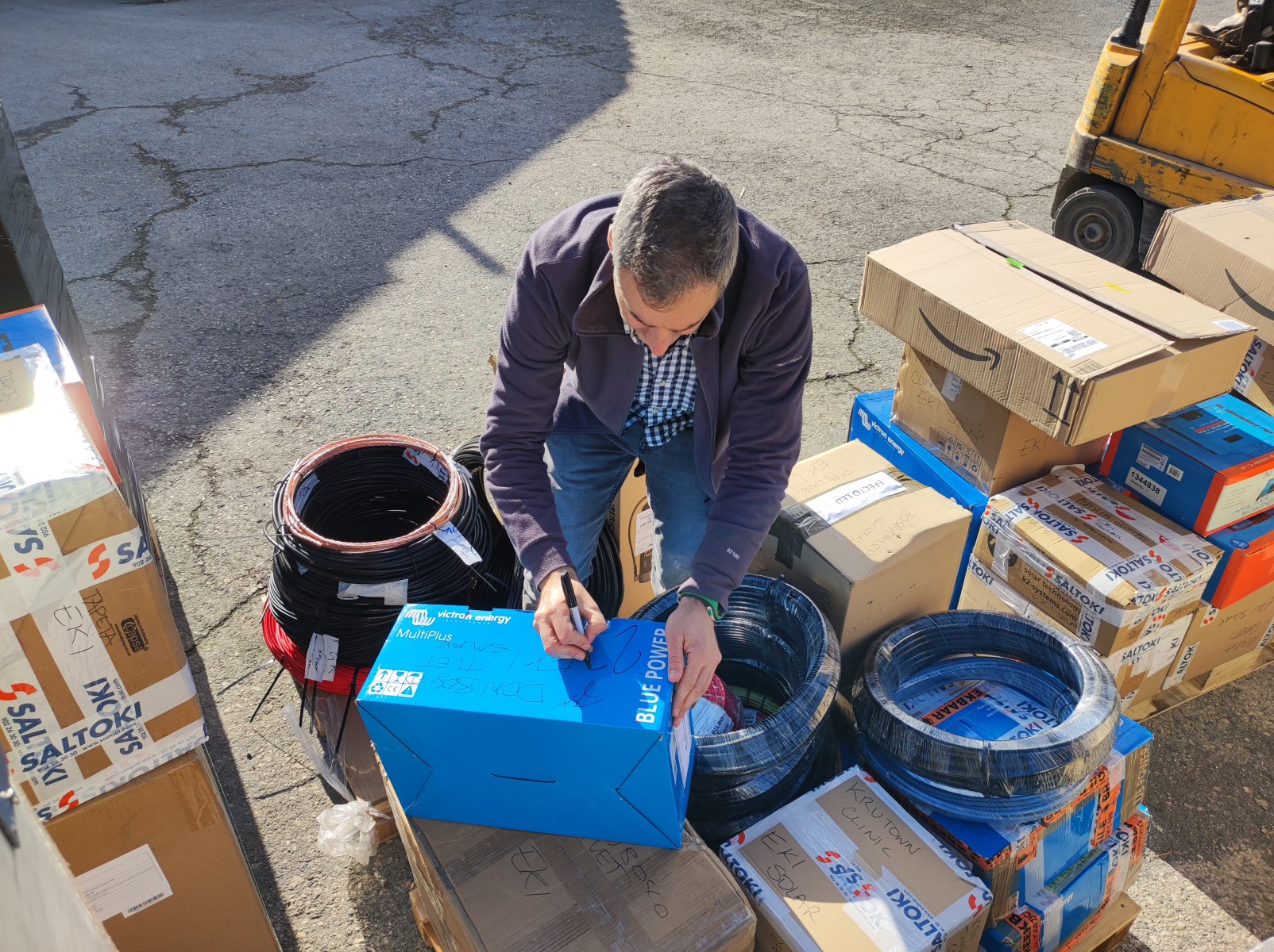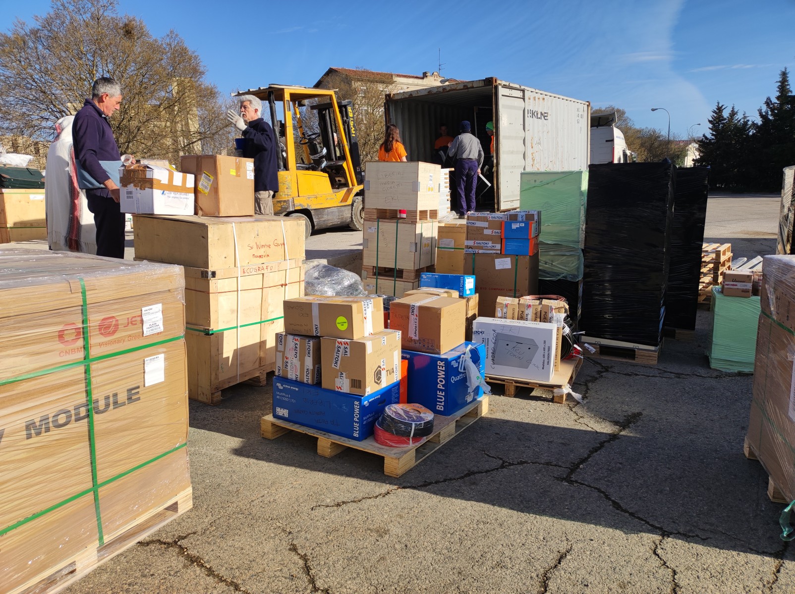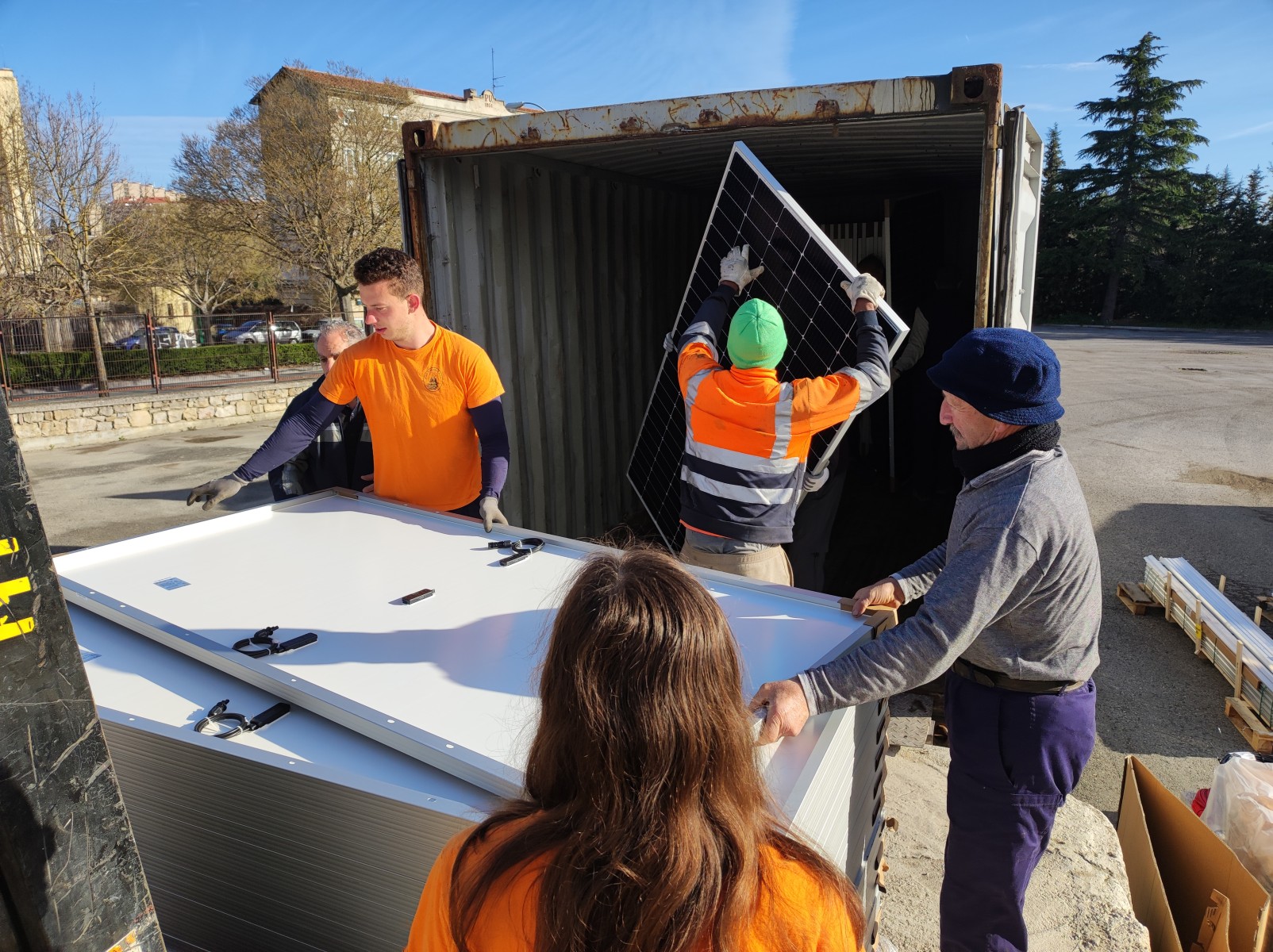 También se han enviado otros materiales fotovoltaicos para el centro de formación profesional de Salesianos. Como es habitual se ha completado la carga con algún otro material diverso.