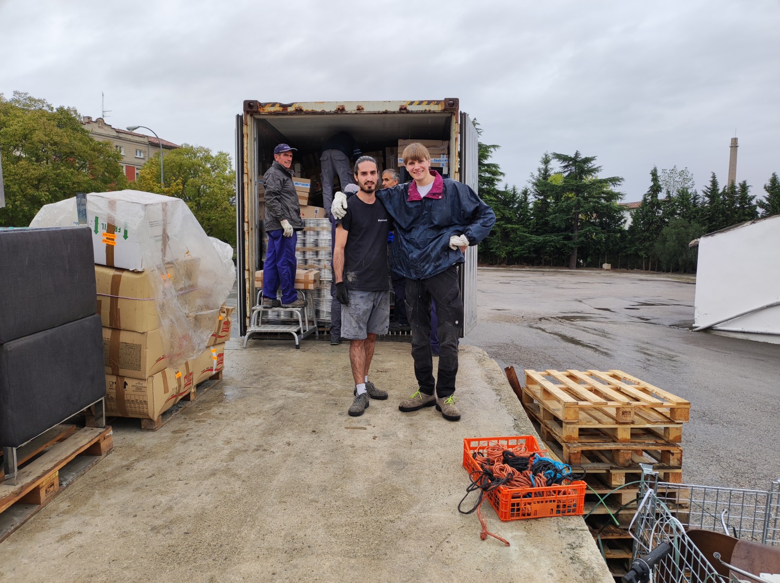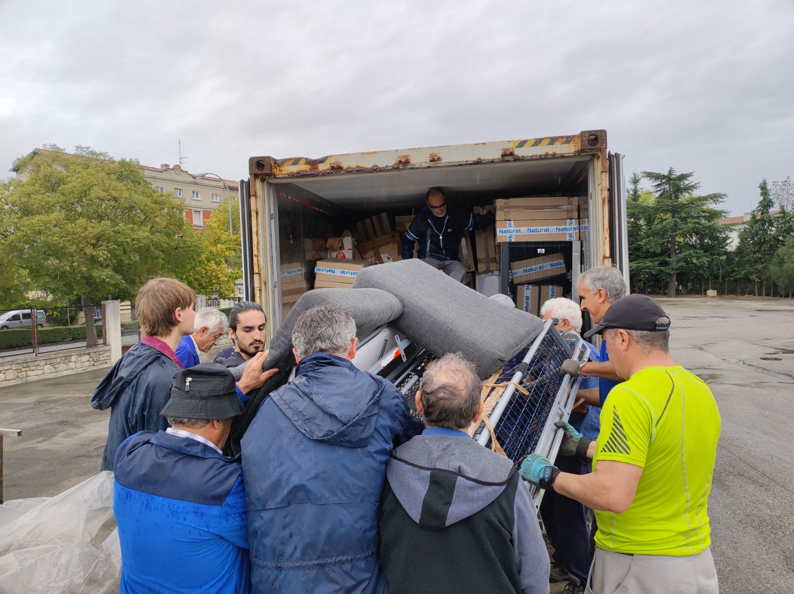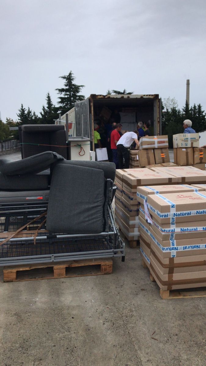 Se han cargado materiales como placas solares, materiales de amueblamiento escolar, herramientas y maquinaria para la construcción, puertas, sanitarios de baño, palés de comida, bicicletas, ropa, higiene, etc.