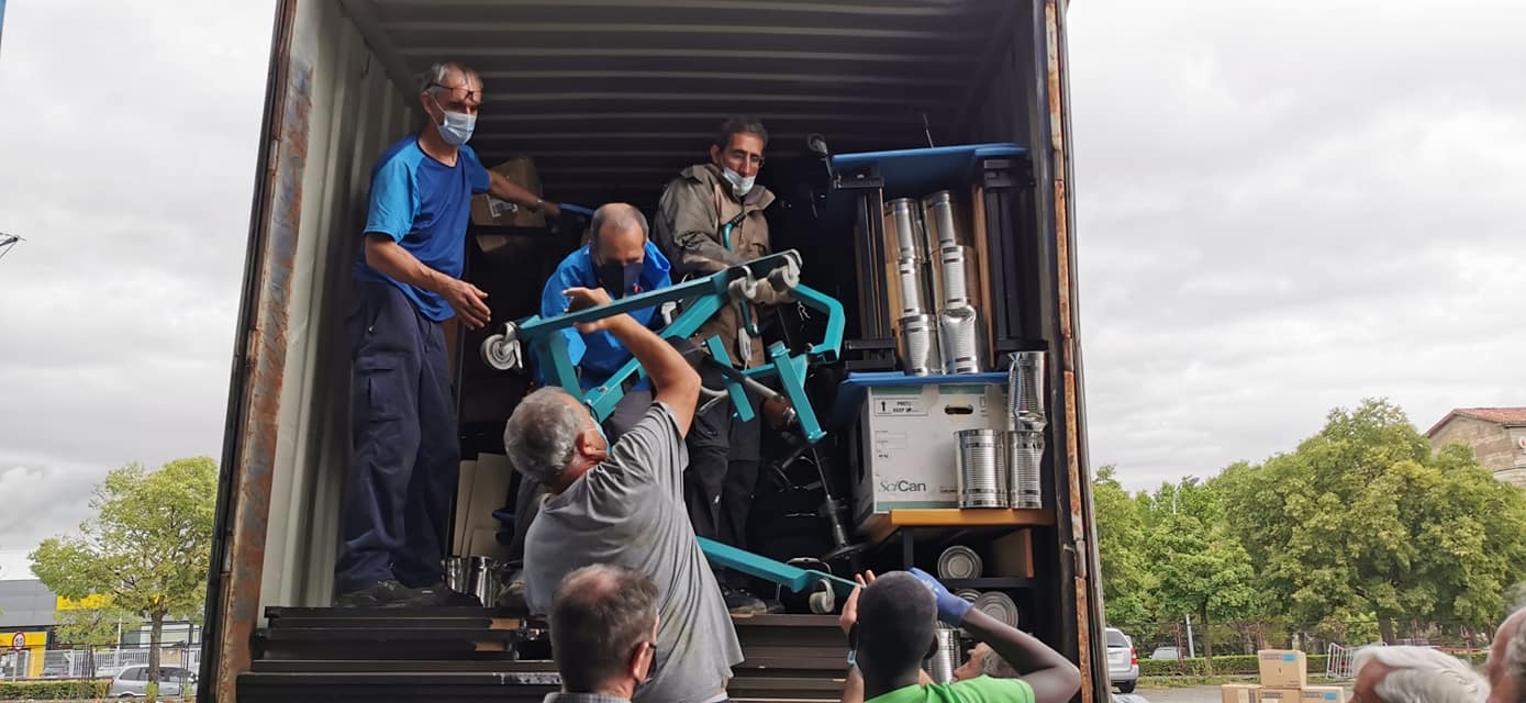 Nuestro envío contenía material para cirugía oftalmológica, microscopios manuales, columnas de anestesia, ecógrafos, una máquina de extracorpórea, elementos mecánicos de rehabilitación, medicación, material escolar, pupitres, ordenadores, impresoras, ropa deportiva, ropa infantil y de adulto, conservas de alimentos vegetales, mobiliario para escuelas y formación profesional, cunas-incubadoras para prematuros fabricadas por Medicina Abierta al Mundo por medio de la colaboración de Salesianos e ingenieros jóvenes, etc.