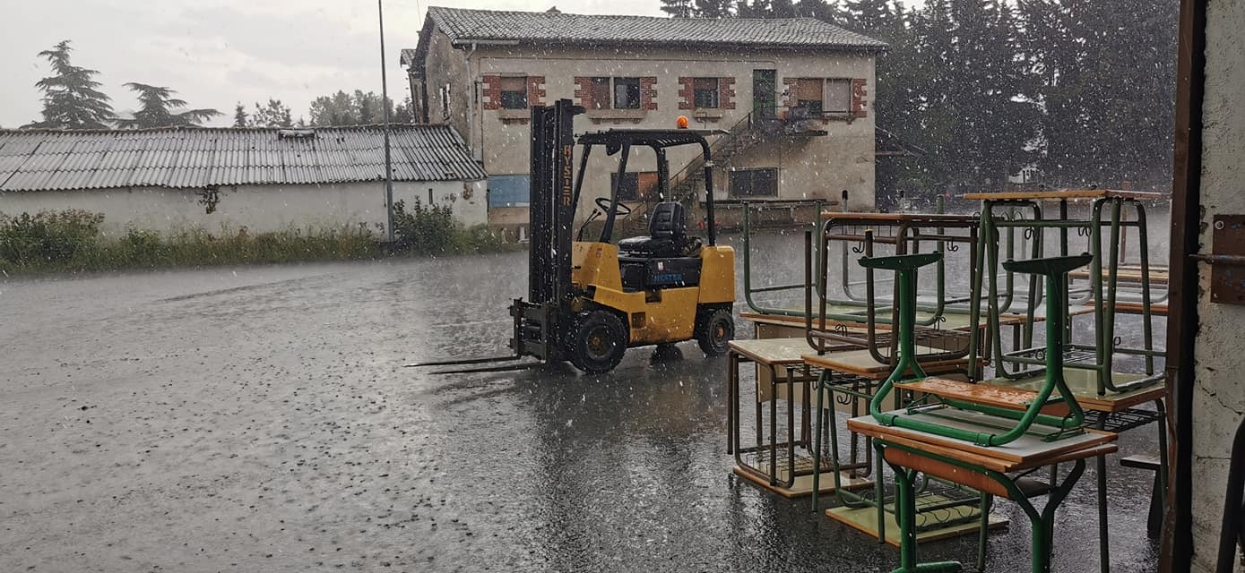 El diluvio nos dificultó un poco pero no lo suficiente como para disminuir el ánimo y empuje de nuestros voluntarios.