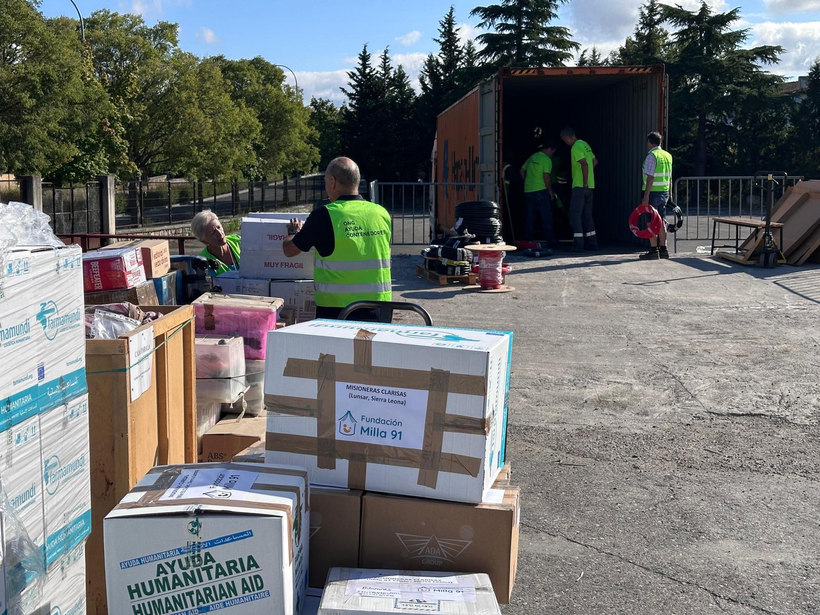 Se han cargado diferentes materiales para las Hermana Misioneras Clarisas por parte de la Fundación Milla 91. También cocina industrial, alimentos, máquinas de coser, ordenadores, estanterías, libros, etc.