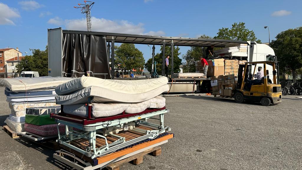 Básicamente es un material que hace unos días recogimos de la Residencia de San Gerónimo de Estella y va directamente a Liviv donde se repartirá para una residencia de ancianos en Odesa, una de las zonas más castigadas por la guerra,  y el resto de alimentos que enviamos irán a la zona de conflicto, zona del este. A Jerson , donde lo siguen pasando muy mal, por el desastre natural de la rotura de la presa.