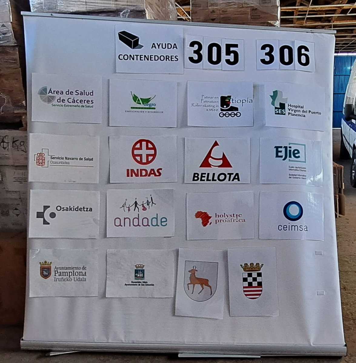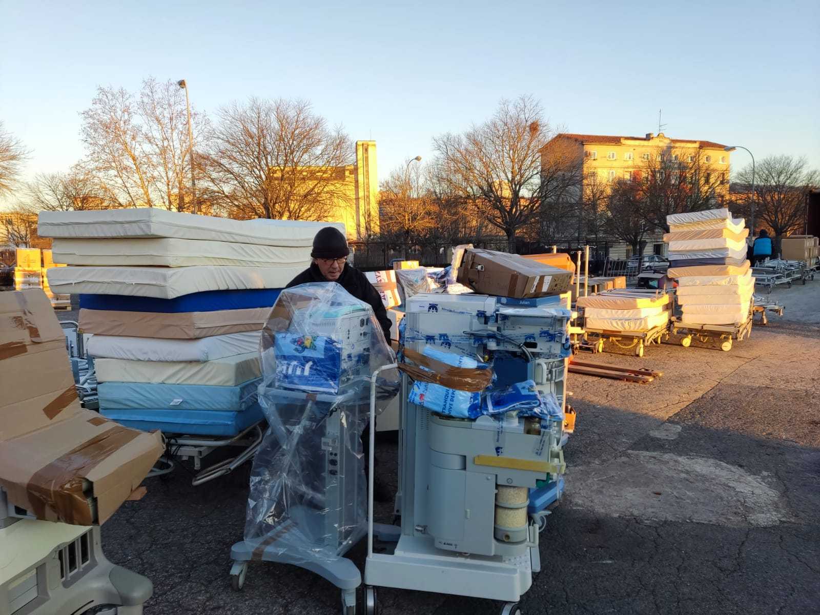 Todo el material recopilado ha sido donado por diversas instituciones y empresas. Las máquinas de electromedicina llegadas desde la Fundación Allegro con origen en los hospitales de Cáceres y Plasencia y el resto de material pesado, como camas, camillas, colchones, mesillas, sillones, etc., procedentes del Hospital Universitario de Navarra y de Osakidetza, además de todo el paquete protésico, de rehabilitación, de la dotación informática y de los utensilios médico quirúrgicos de todo tipo donados por diversas instituciones y empresas.