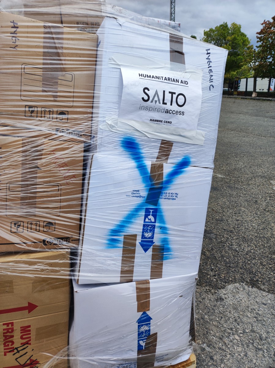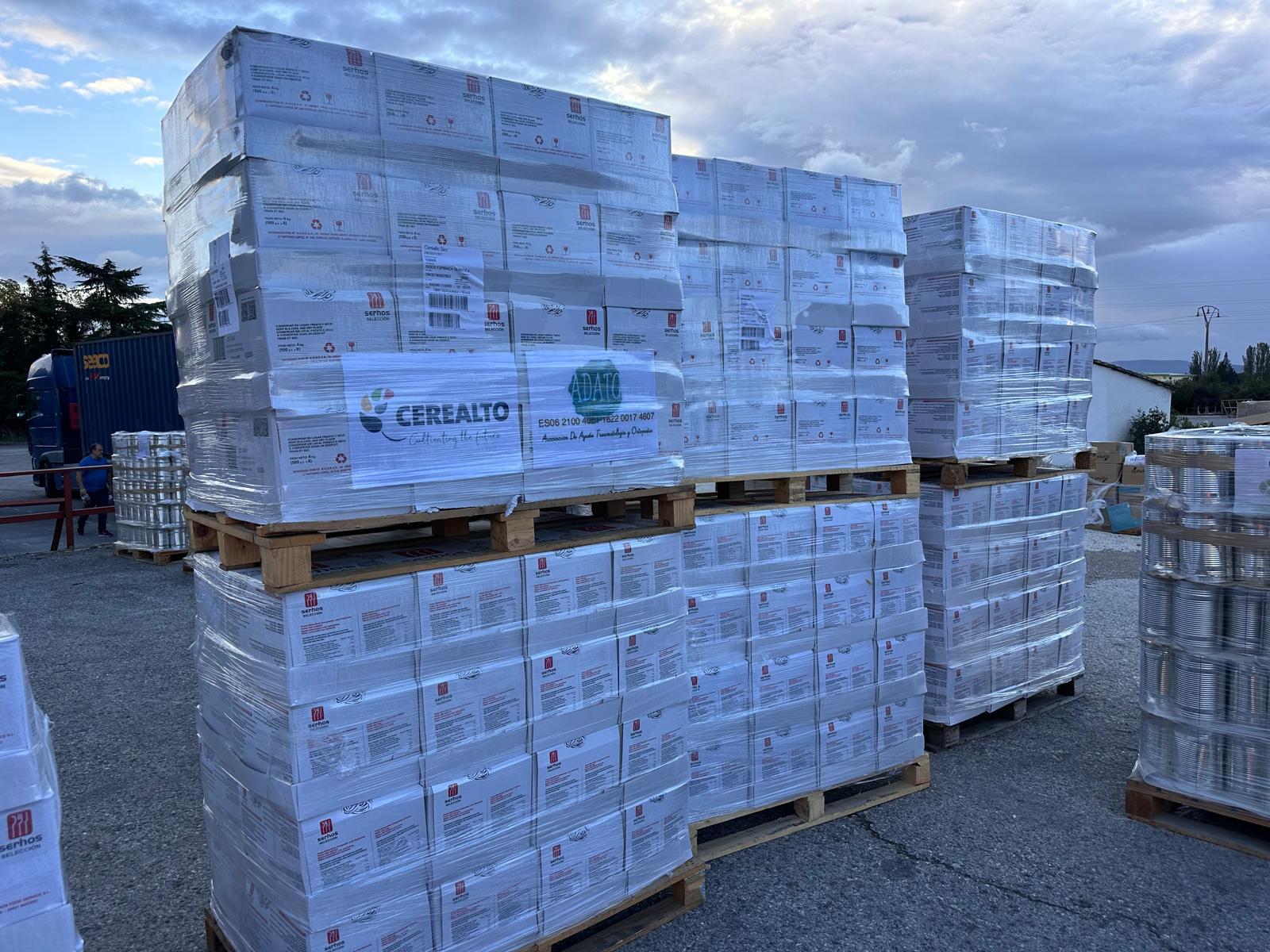 Se han cargado 48 toneladas de alimentos, conservas de diversas verduras, pasta y galletas. También productos de higiene y sanitario-hospitalarios.
