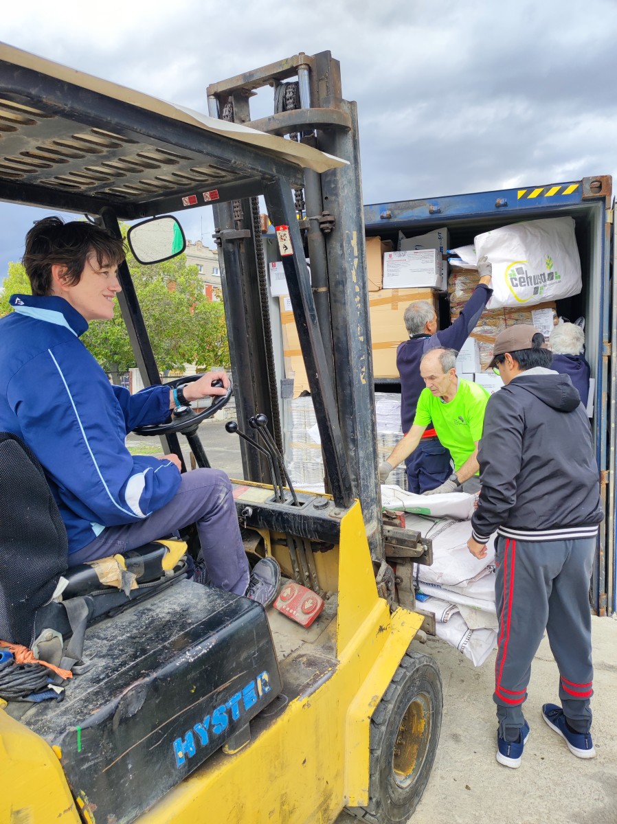 Muchas gracias a todas las personas e instituciones que han posibilitado este envío. Donantes y voluntarios que han preparado con mimo cada palé, cada caja y cargado los contenedores en una jornada de tiempo tan desapacible en Pamplona.