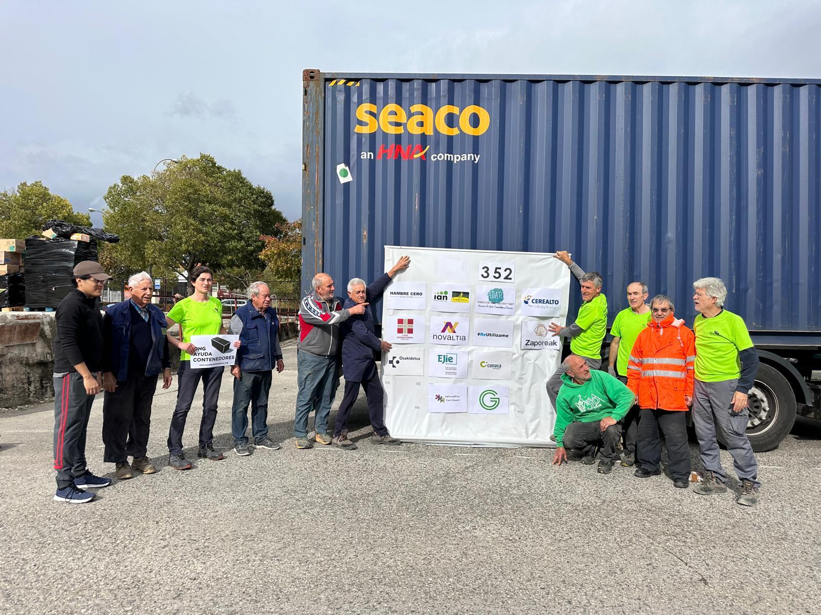 Muchas gracias a todas las personas e instituciones que han posibilitado este envío. Donantes y voluntarios que han preparado con mimo cada palé, cada caja y cargado los contenedores en una jornada de tiempo tan desapacible en Pamplona.