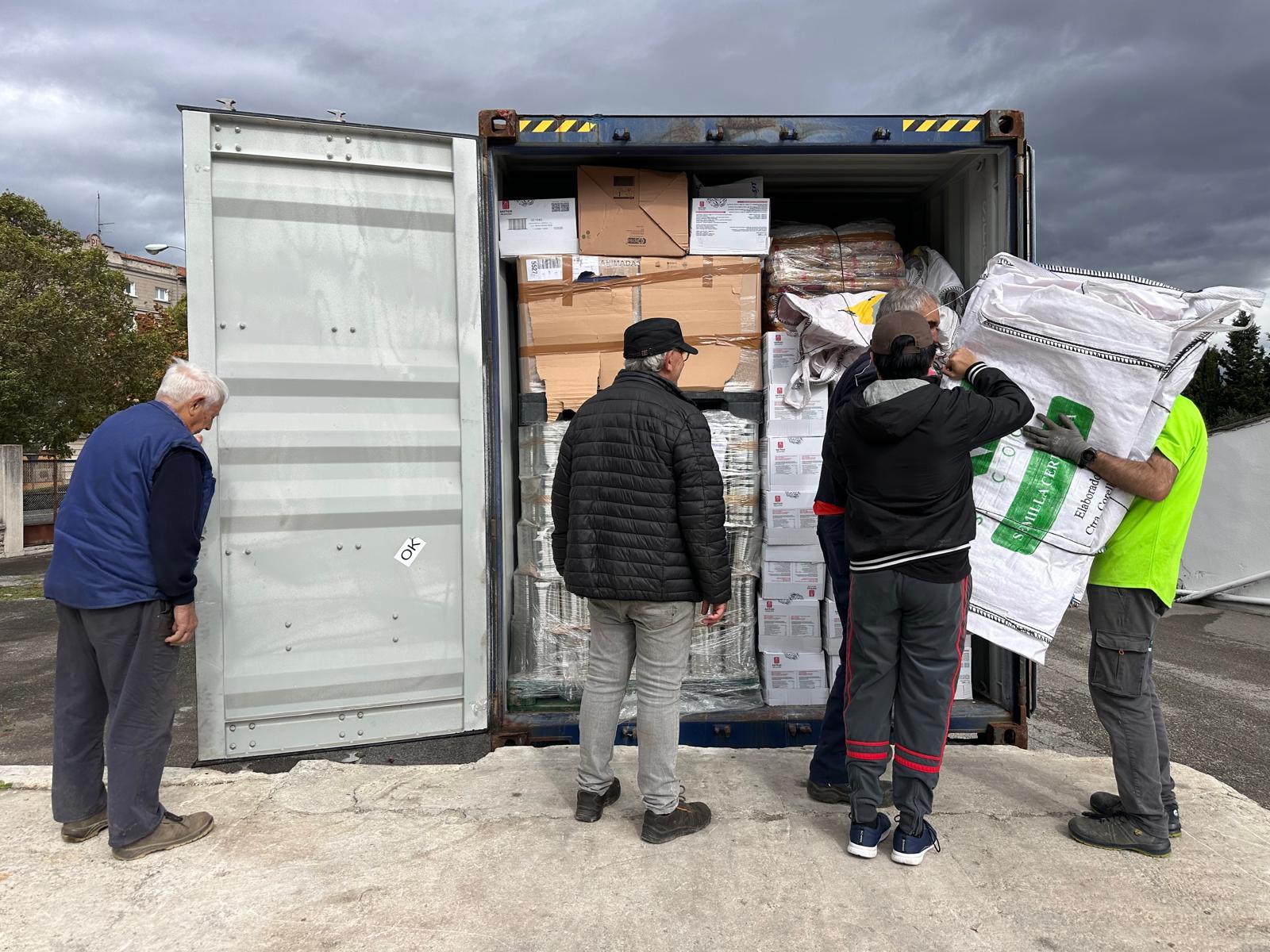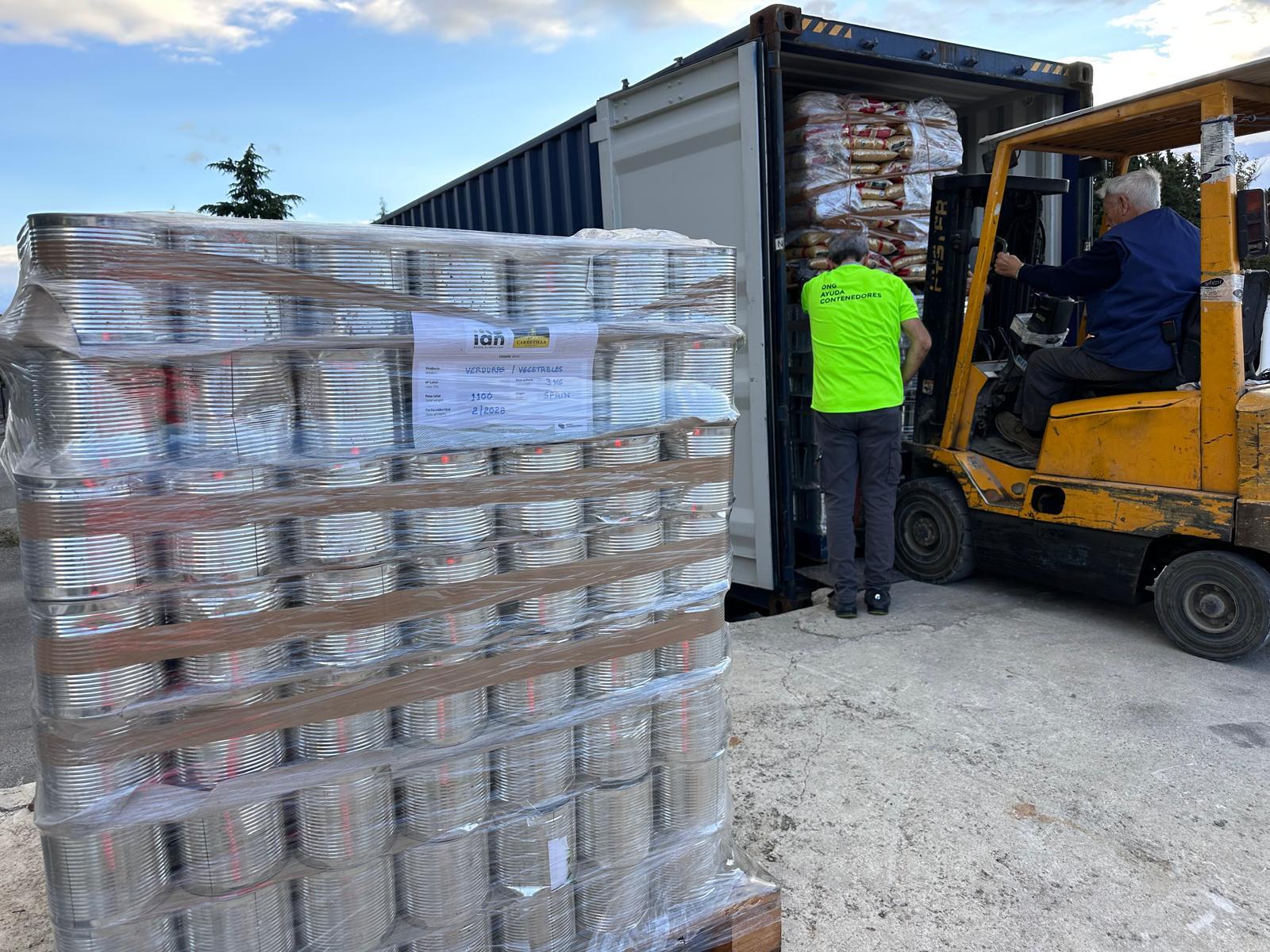 Se han cargado 48 toneladas de alimentos, conservas de diversas verduras, pasta y galletas. También productos de higiene y sanitario-hospitalarios.
