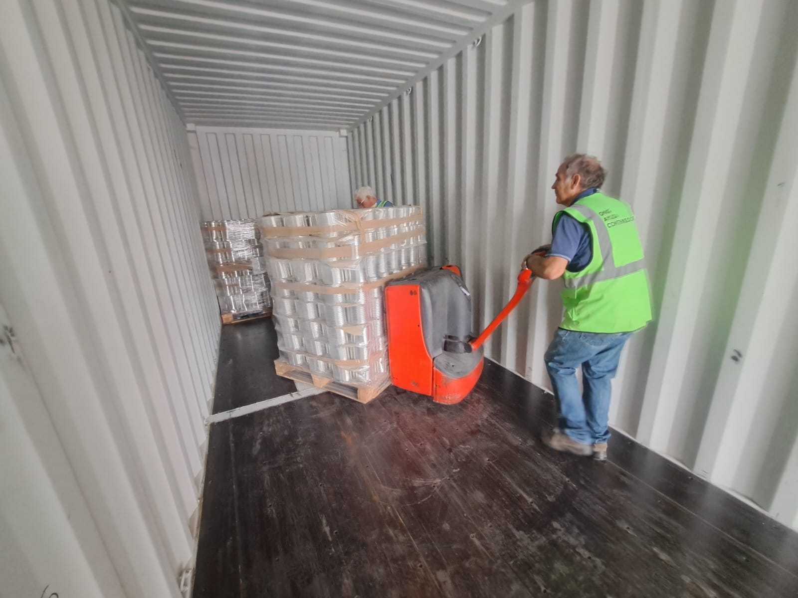 Se han cargado 50 toneladas de alimentos, conservas de diversas verduras. Una ayuda directa para la población que está sufriendo el horror de las guerras desatadas en la zona.