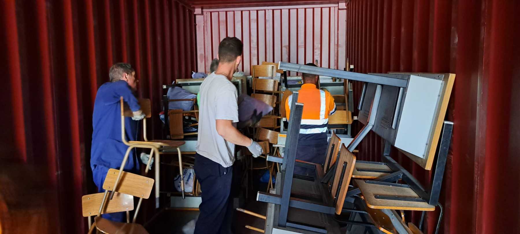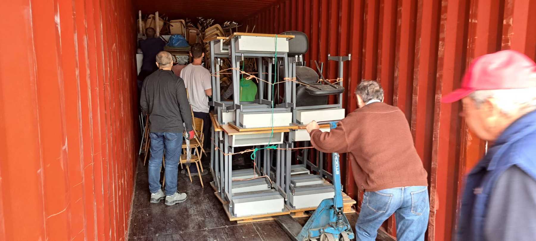 El contenedor se va a ir en la diócesis de Popokabaka, en la parroquia Sagrada familia donde está el obispado. La ciudad se encuentra a unos 400 kilómetros de Kinshasa que es la capital. De Popokabaka hasta Kinshasa en el coche son 13 horas porque la carretera no existe, es una ruta de tierra. Se han cargado 200 pupitres y otros materiales para reconstruir y habilitar escuelas para la ayuda en la labor educativa.