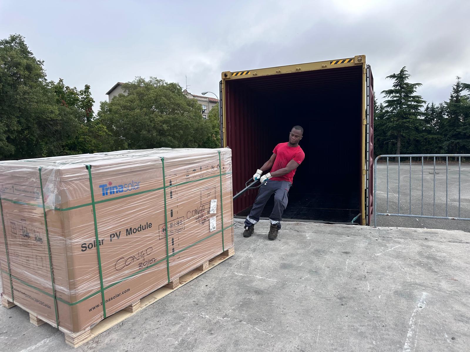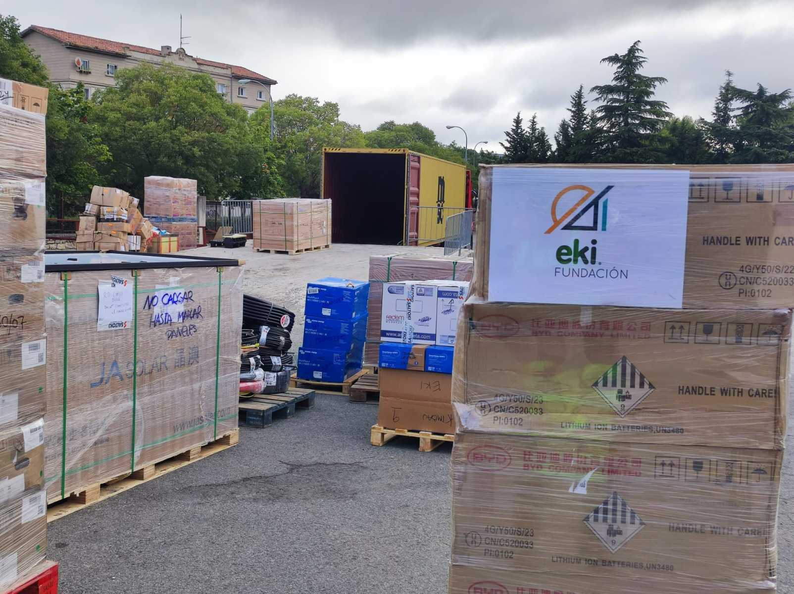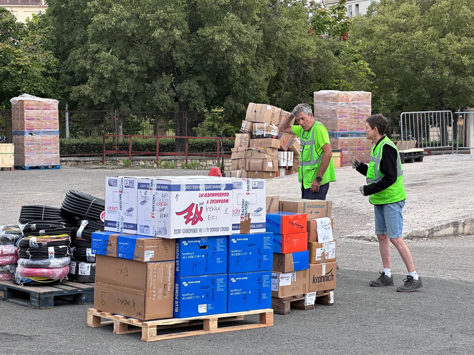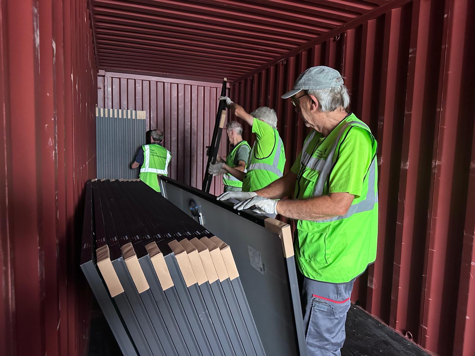 Para diferentes proyectos, también se ha cargado una dotación de placas fotovoltaicas que envía la Fundación EKI.