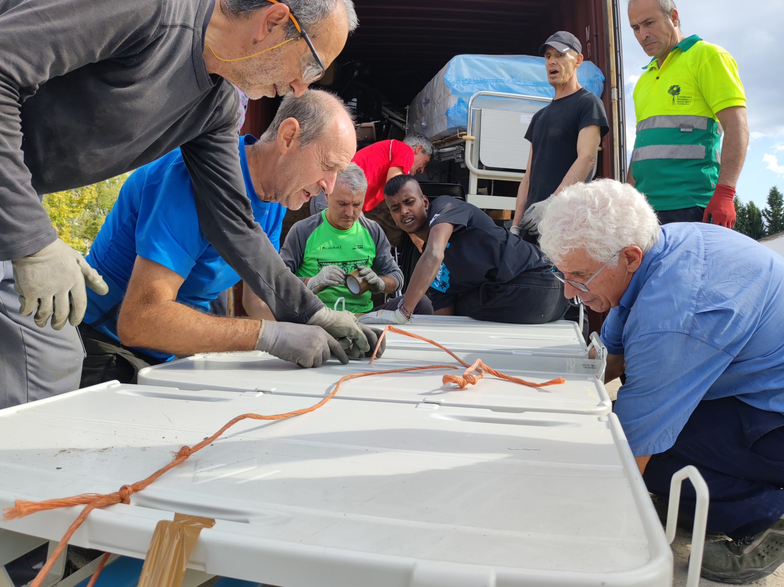 Muchas gracias a todas las personas, entidades e instituciones que nos donan los diversos materiales, al voluntariado que prepara todo hasta el momento de la carga y, cómo no, a las personas que se esmeran en la carga para que el espacio del Contenedor, parezca que no tiene fin. Muchas gracias, Eskerrik asko denori.