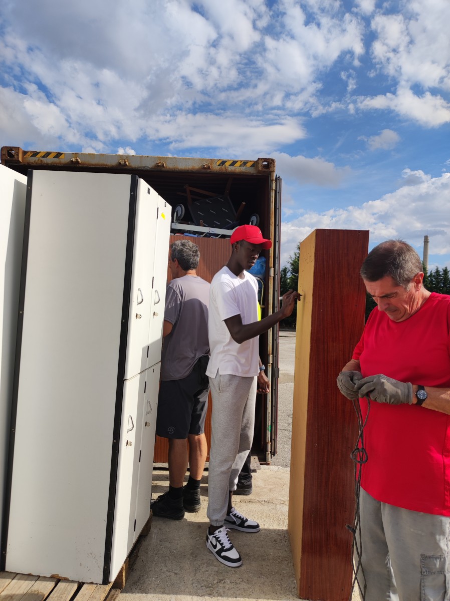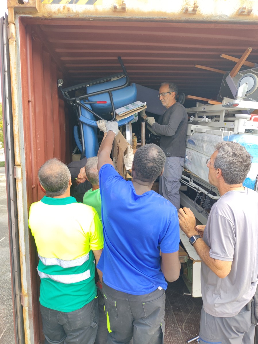 Se han cargado bicicletas, ordenadores, ropa, materiales de hospital, carpintería, peluquería, deportivo, escolar, de higiene, etc.
