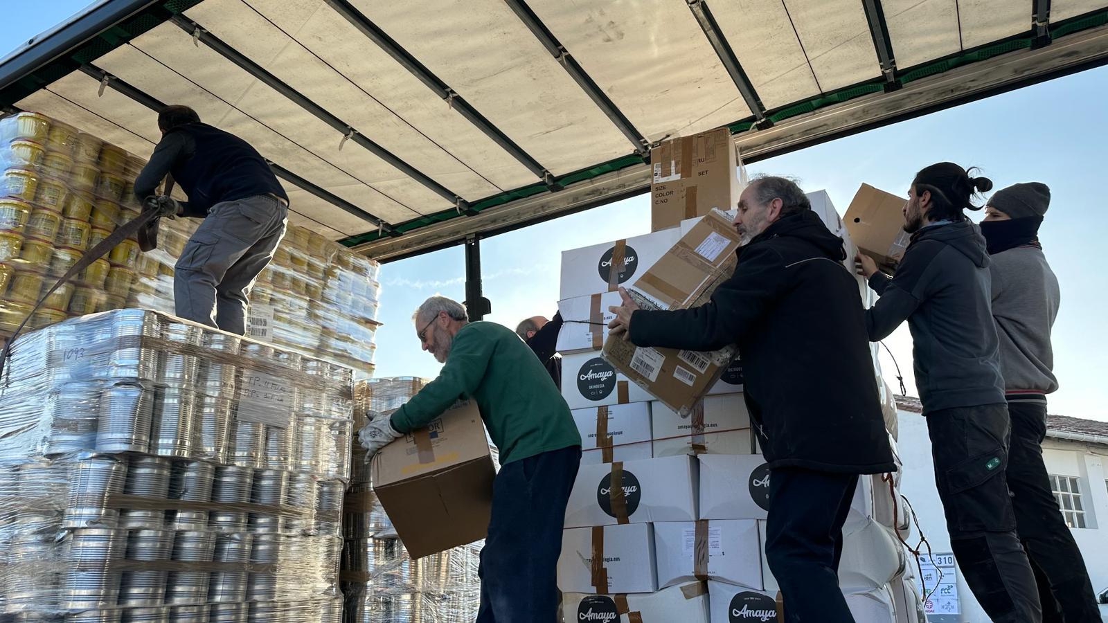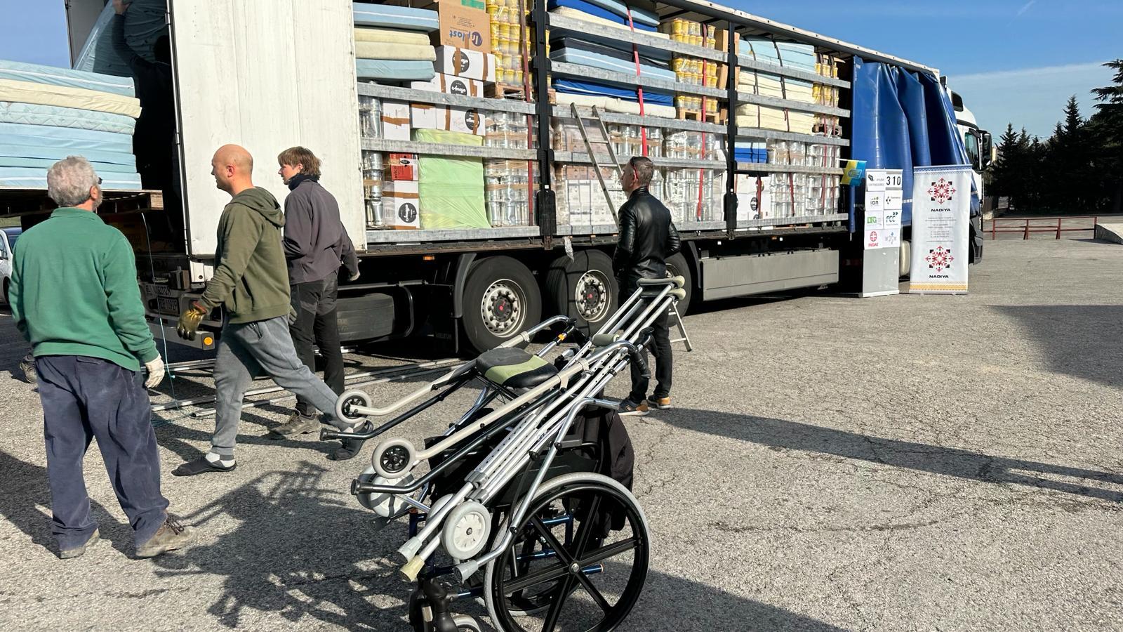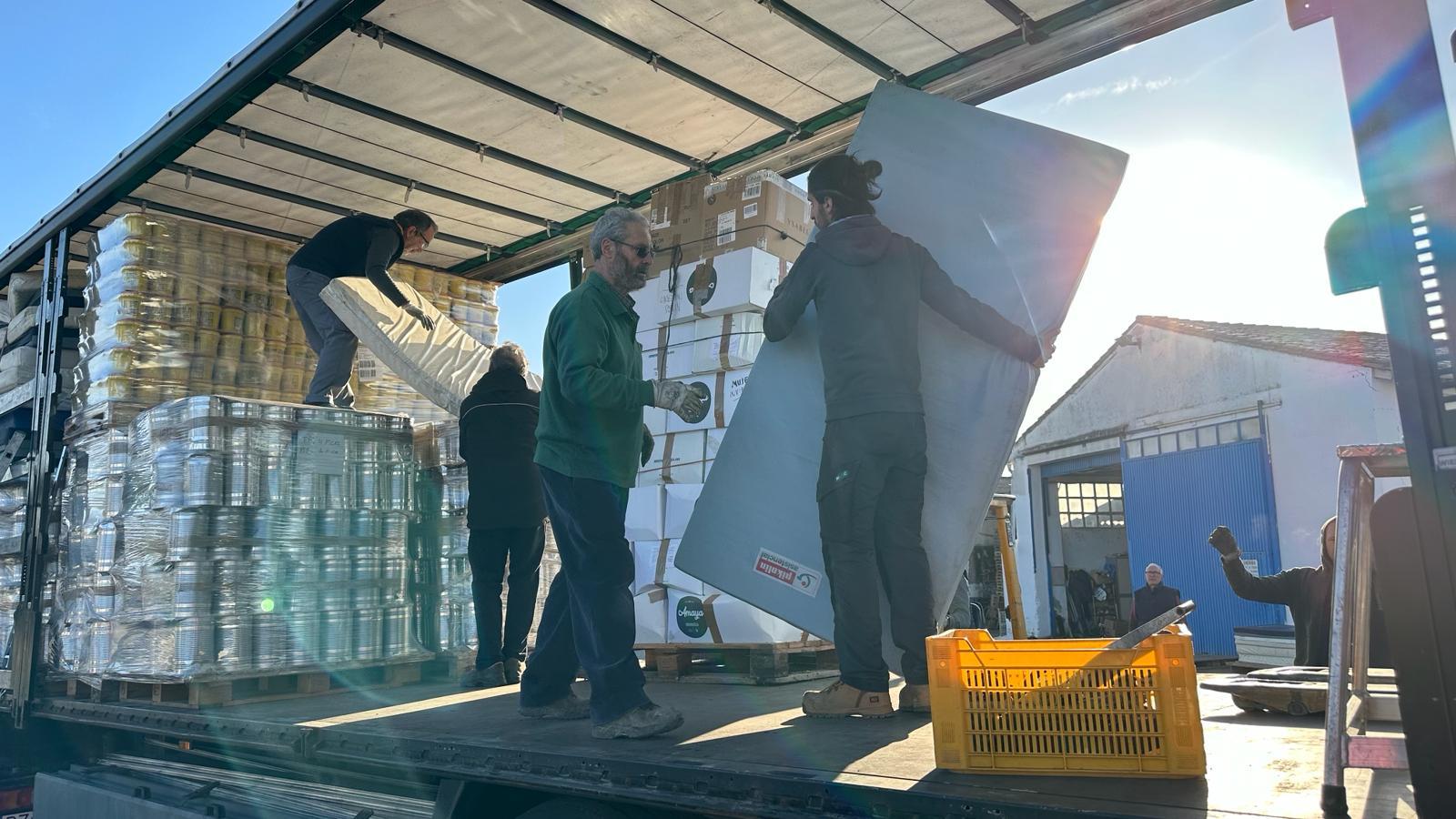 Se ha cargado comida en conserva, colchones, material sanitario, y otros materiales.