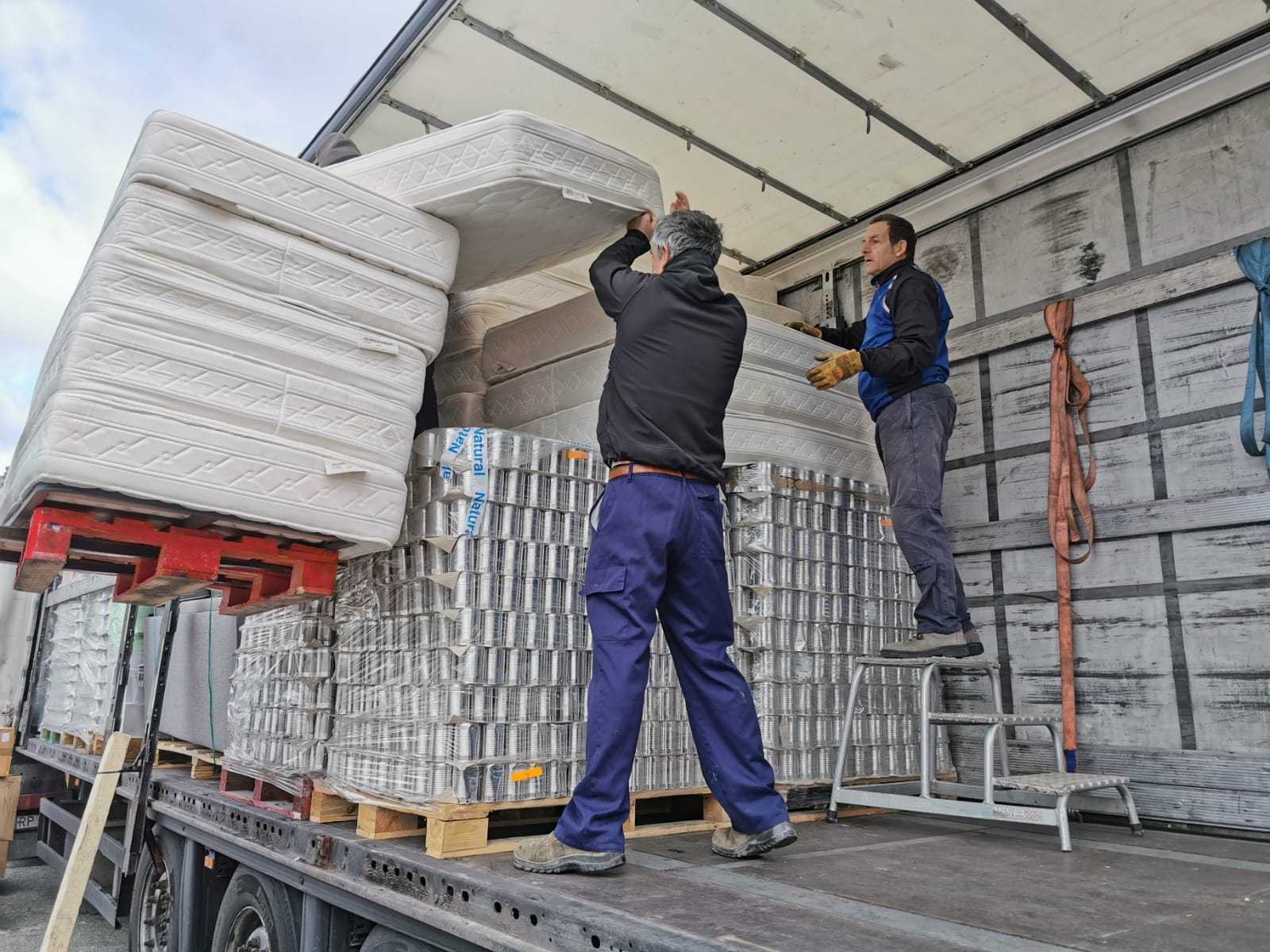 Los colchones van con destino el centro de refugiados.