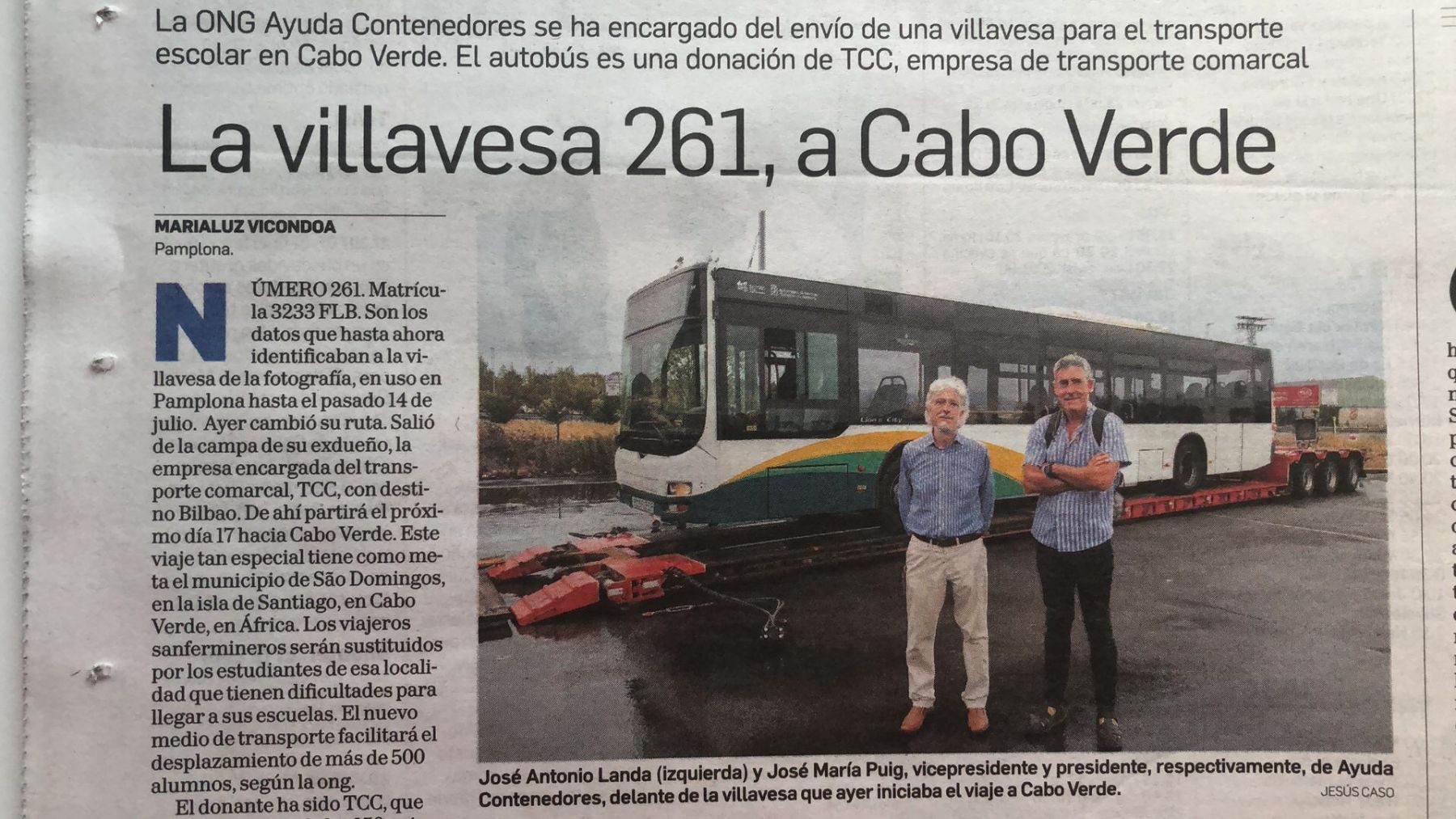 El día 13 de septiembre de 2022, la Villavesa 261, que hasta el día 14 de julio estuvo operativa en Pamplona, salió rumbo a Praia, Cabo Verde. Un transporte muy especial vía Bilbao.