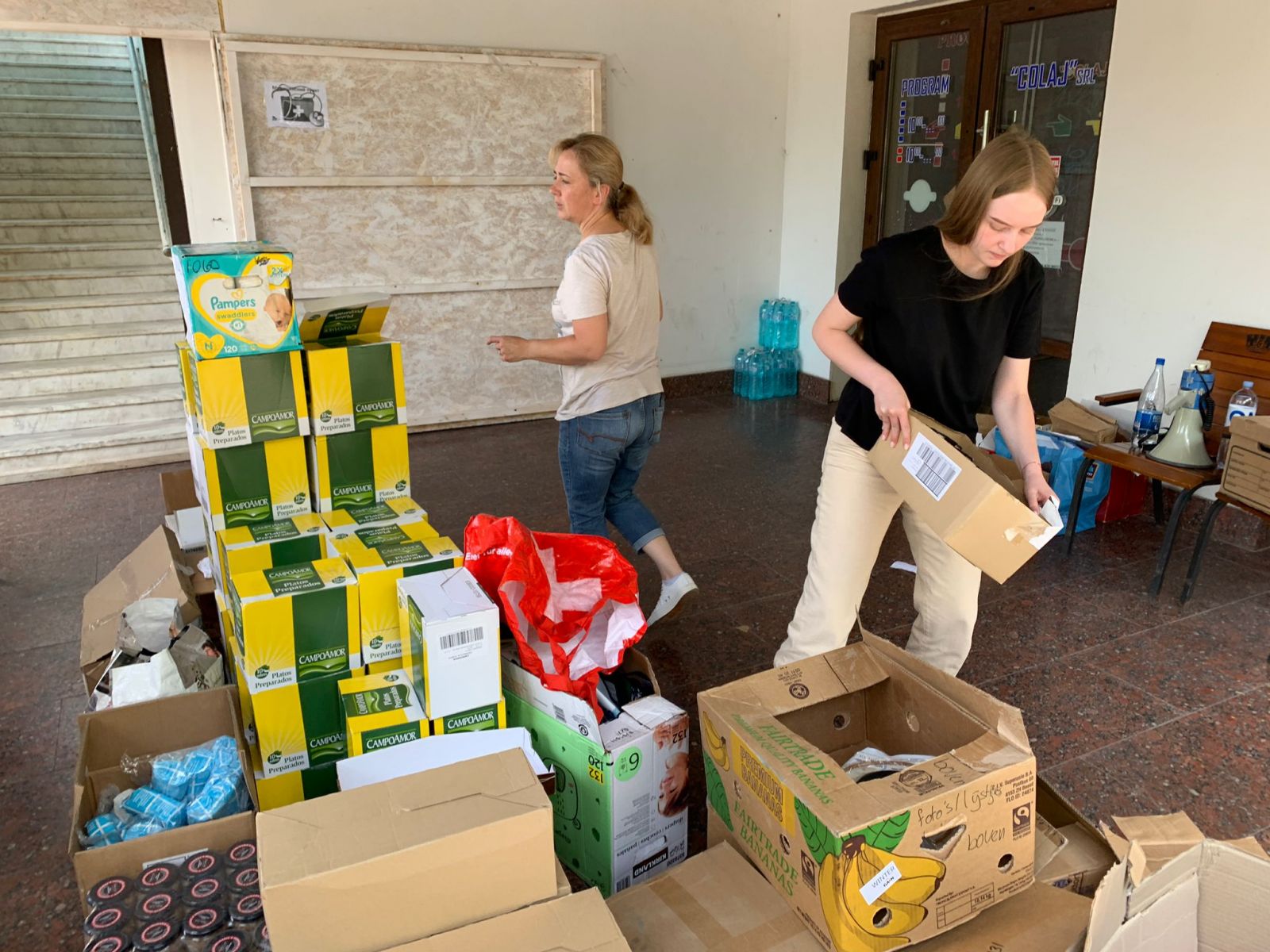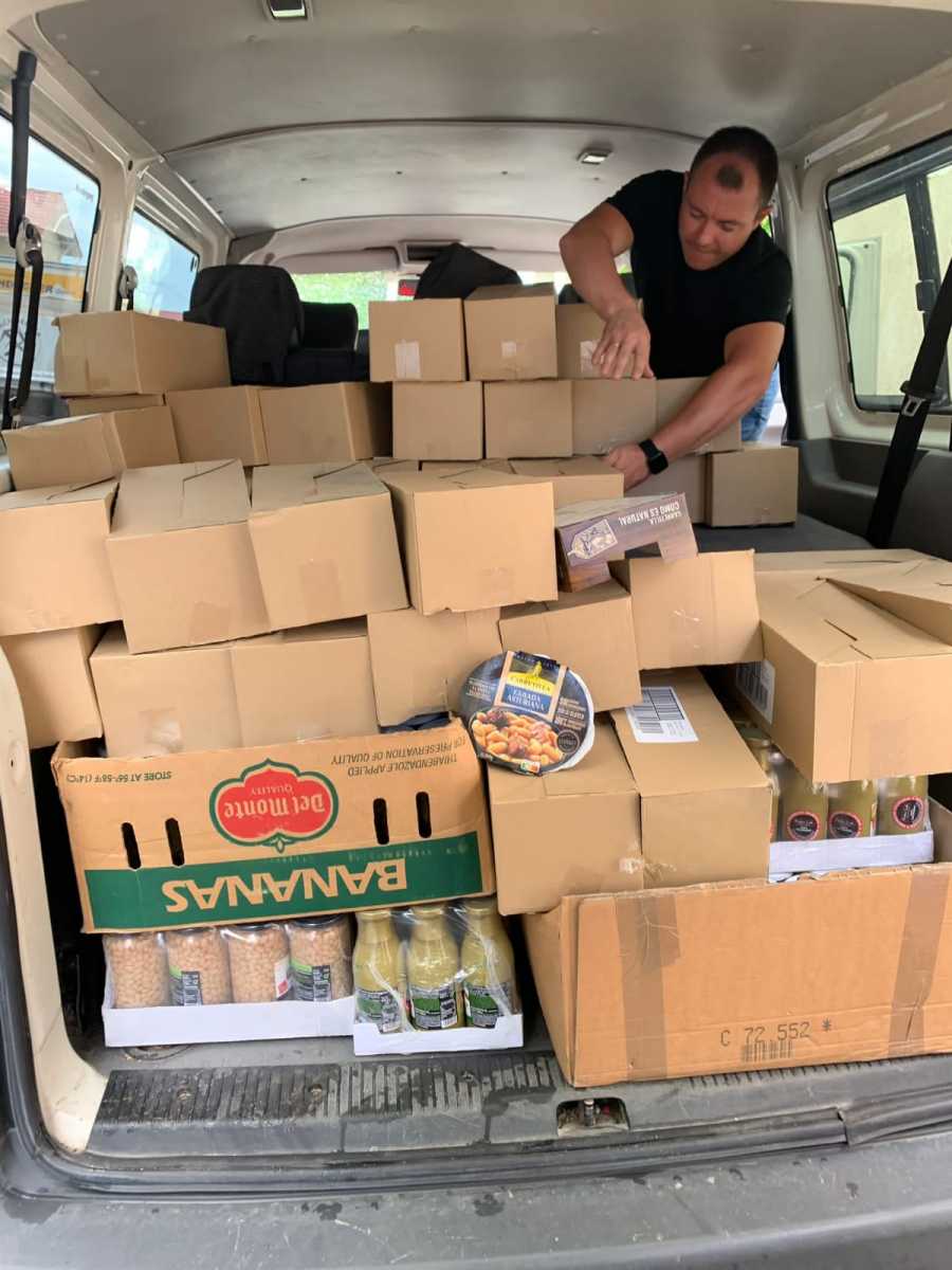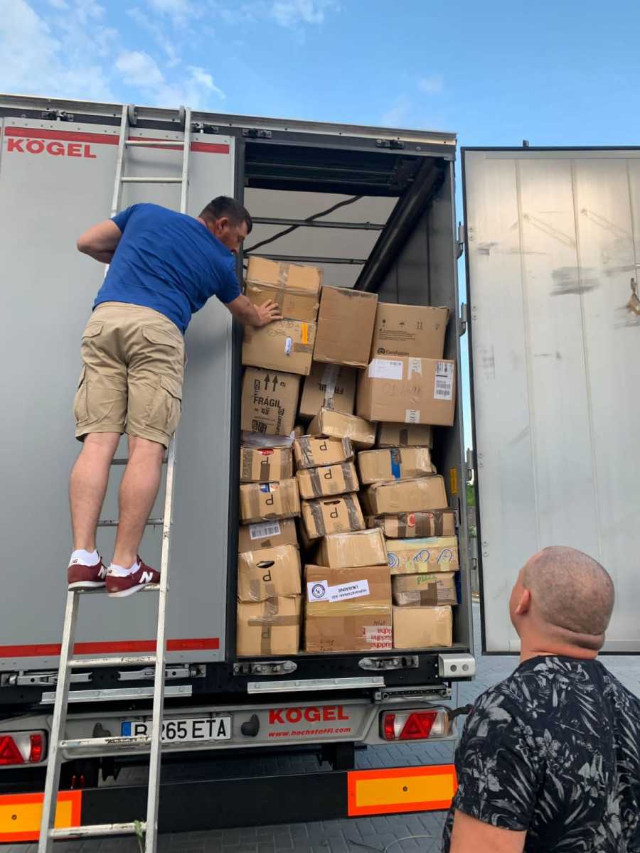 El  miércoles 25 de Mayo, a primera hora de la mañana, cargamos el primer tráiler de los dos que se mandaron este día con destino  final Ukrania.  Ayuda humanitaria con alimentos  con destino  inicial Moldavia, con la idea  que desde allí se envíen a Odesa en furgonetas. Contamos para la carga con la presencia de ucranianos que hacen la conexión entre España y Ukrania.