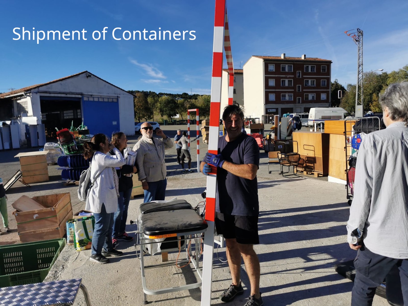 ESC volunteers would be incorporated into the activities we propose: 1. Reuse and recycling with various workshops on mechanics, carpentry, painting, collection trips and meetings with donors and 2. the International Shipping activity with the workshops of selection, cleaning and preparation of materials, filling and departure of international containers, monitoring of arrival in the countries Hundreds of donors offer us their used and perfectly reusable materials, public and private institutions, hospitals, educational centres, companies and many, many individuals, such as: hospital beds, medical equipment, sanitary material, desks, blackboards, school material, industrial material, construction material, agriculture, work vehicles, bicycles, wheelchairs, computers, toys, food, clothing…
