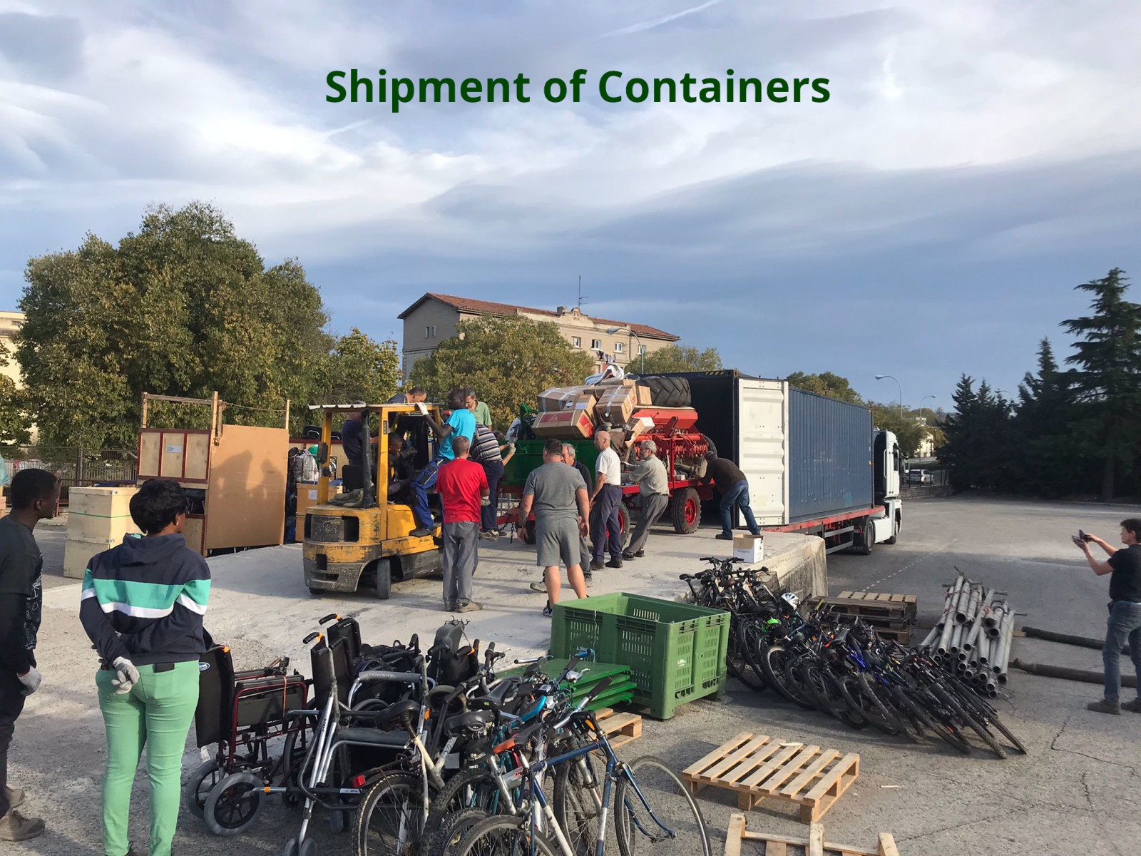 - Shipment of containers and trailers and follow-up. We take care of all the logistics for contracting, administrative tasks, tracking and loading of containers. In 2022, from January to November, 40 containers were sent to Africa, Asia and South America. including several support containers to Ukraine.