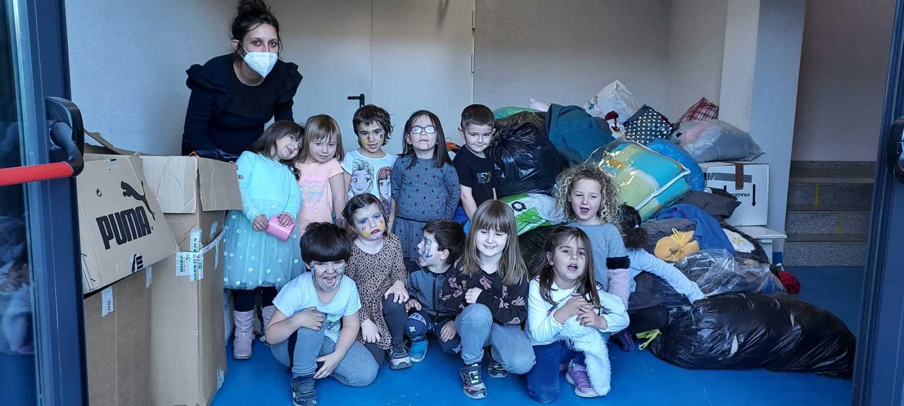 La Ikastola, Andra Mari en Etxarri Aranatz ha donado mantas y ropa.