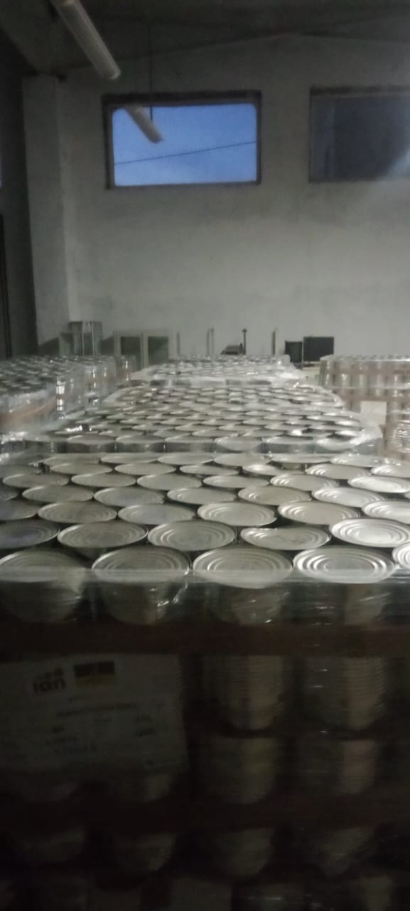 Se cargaron alimentos enlatados de diversas verduras y legumbres, cereales y galletas. También calzado de trabajo, materiales hospitalarios y de higiene, mesas, sillas, etc.