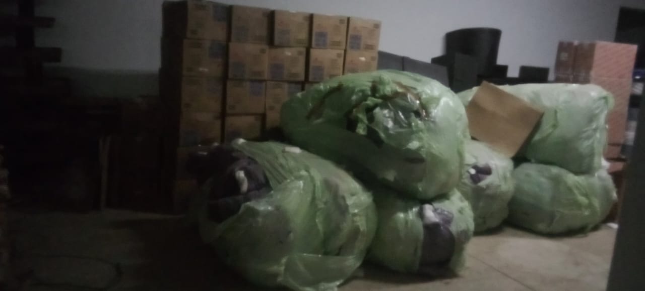 Se cargaron alimentos enlatados de diversas verduras y legumbres, cereales y galletas. También calzado de trabajo, materiales hospitalarios y de higiene, mesas, sillas, etc.