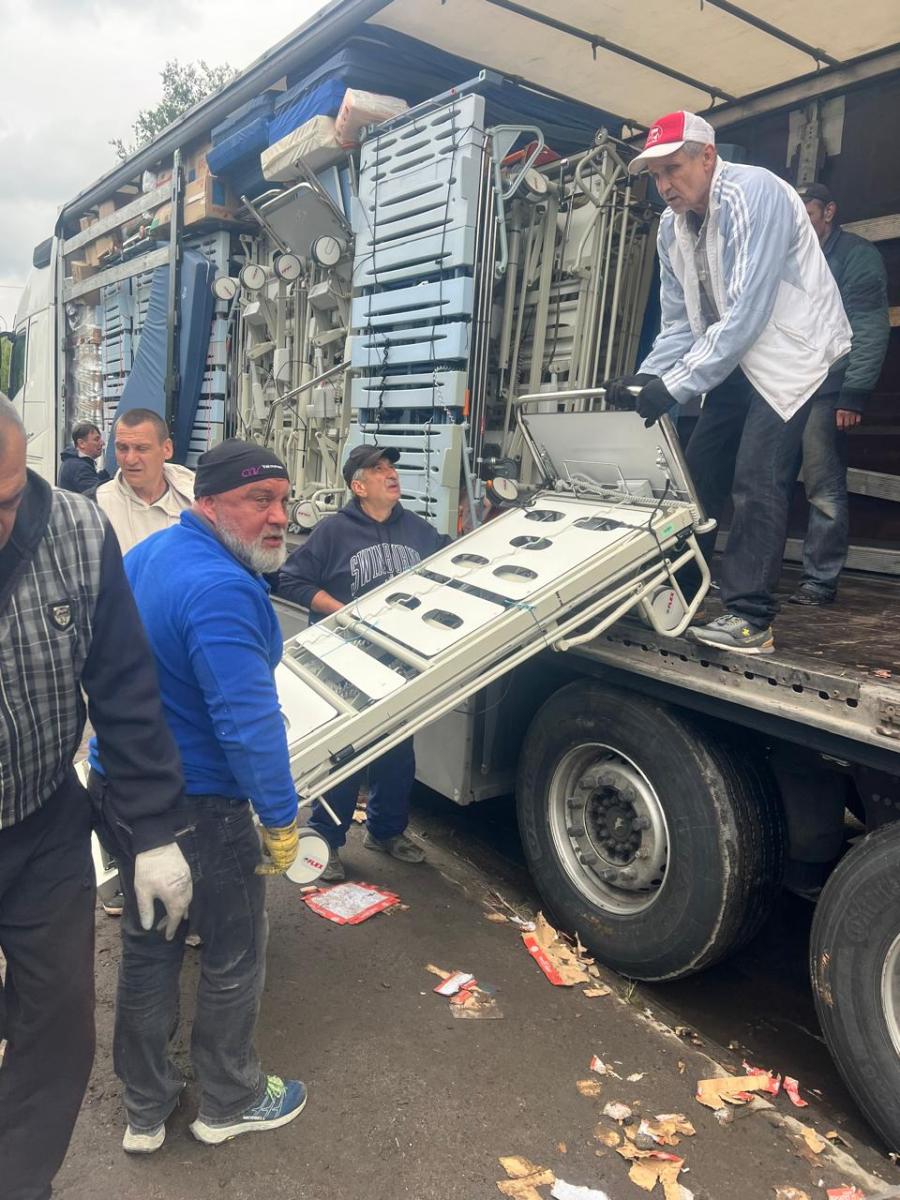 El 9 de mayo de 2025 nos llegan las buenas noticias y un extenso reportaje fotográfico de la descarga del camión tráiler con destino a Ucrania, que se envió el miércoles 30 de abril de 2025, que hacía el número 387 de nuestra serie histórica. Un tráiler cargado con 30 camas de hospital y alimentos para la Charitable Organization Fundation, Mission ohley Rahamim, en la región de Rivne.