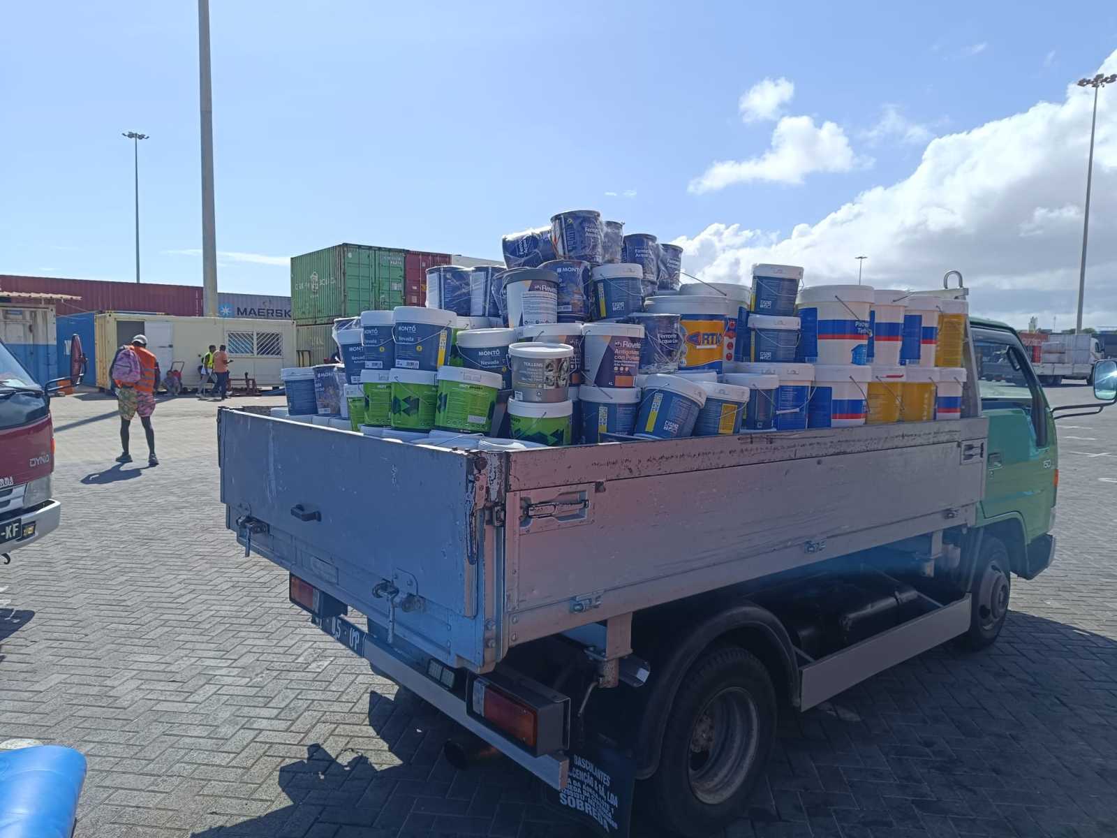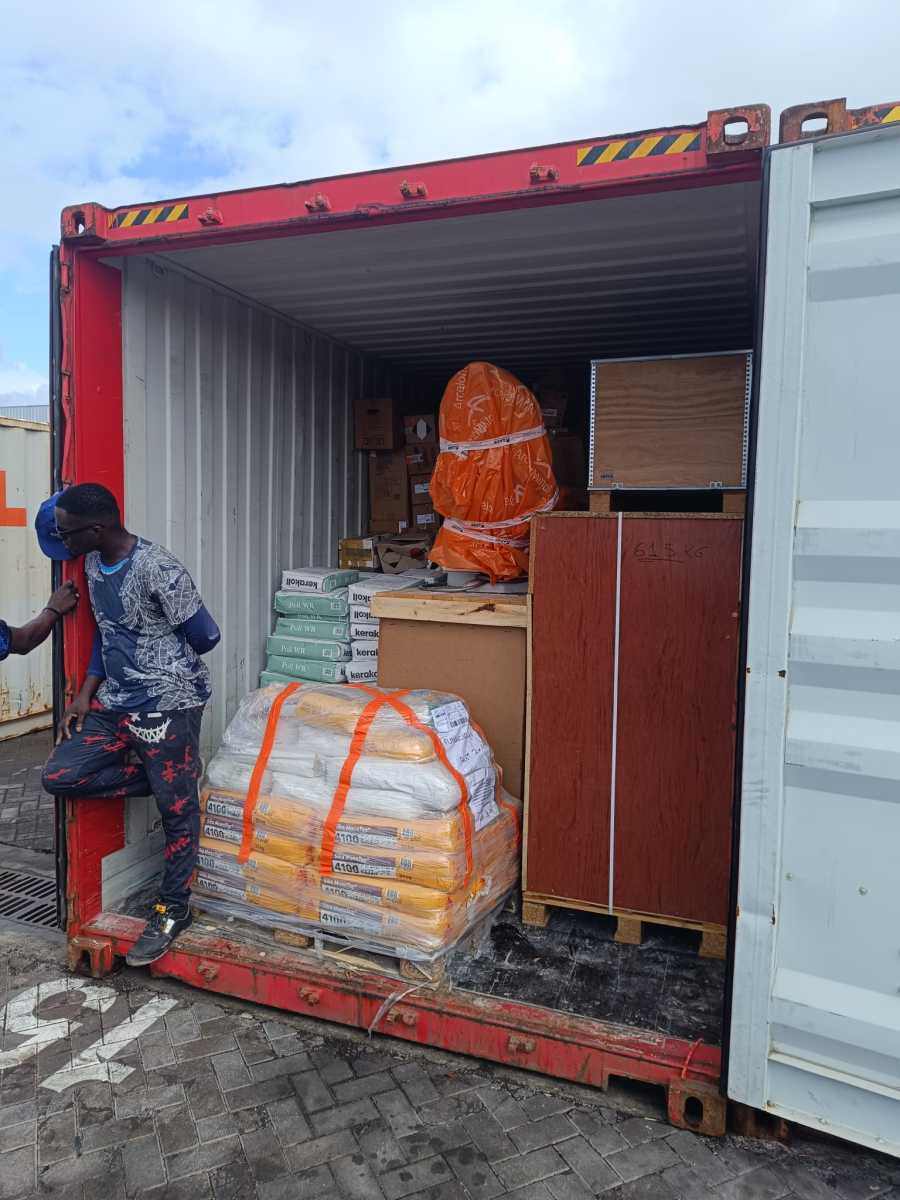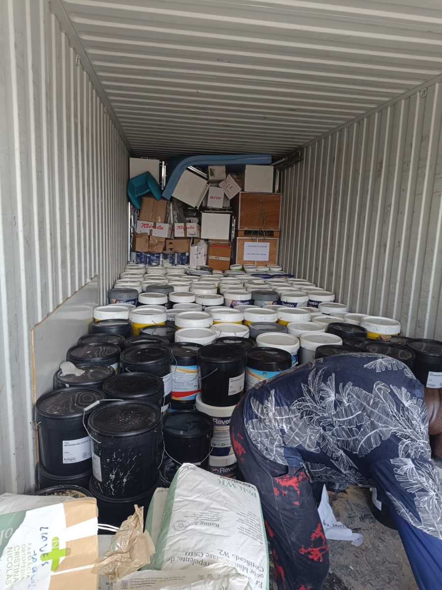 En este contenedor de cargaron materiales de construcción, pintura, cemento, material de limpieza e higiene, calzado de trabajo, herramientas diversas, material hospitalario, etc.
