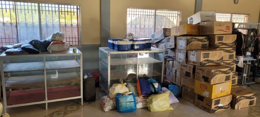 Entre los pupitres, como en tantas ocasiones, se colocaron alimentos, ordenadores, herramientas, materiales hospitalarios y otros materiales.