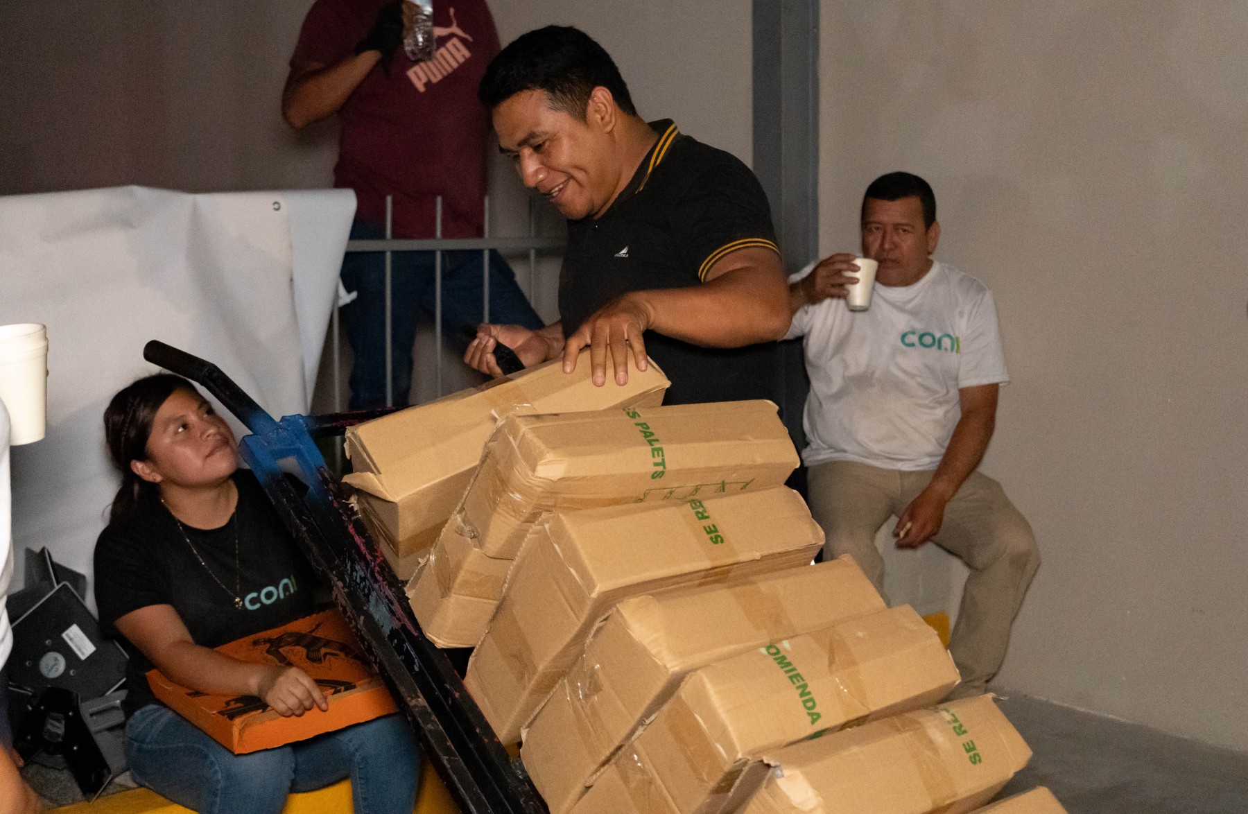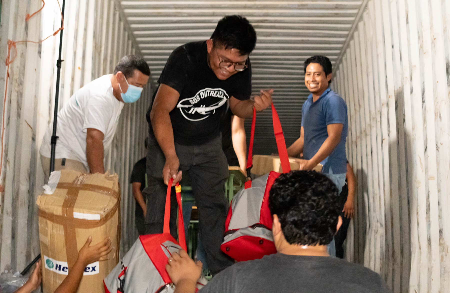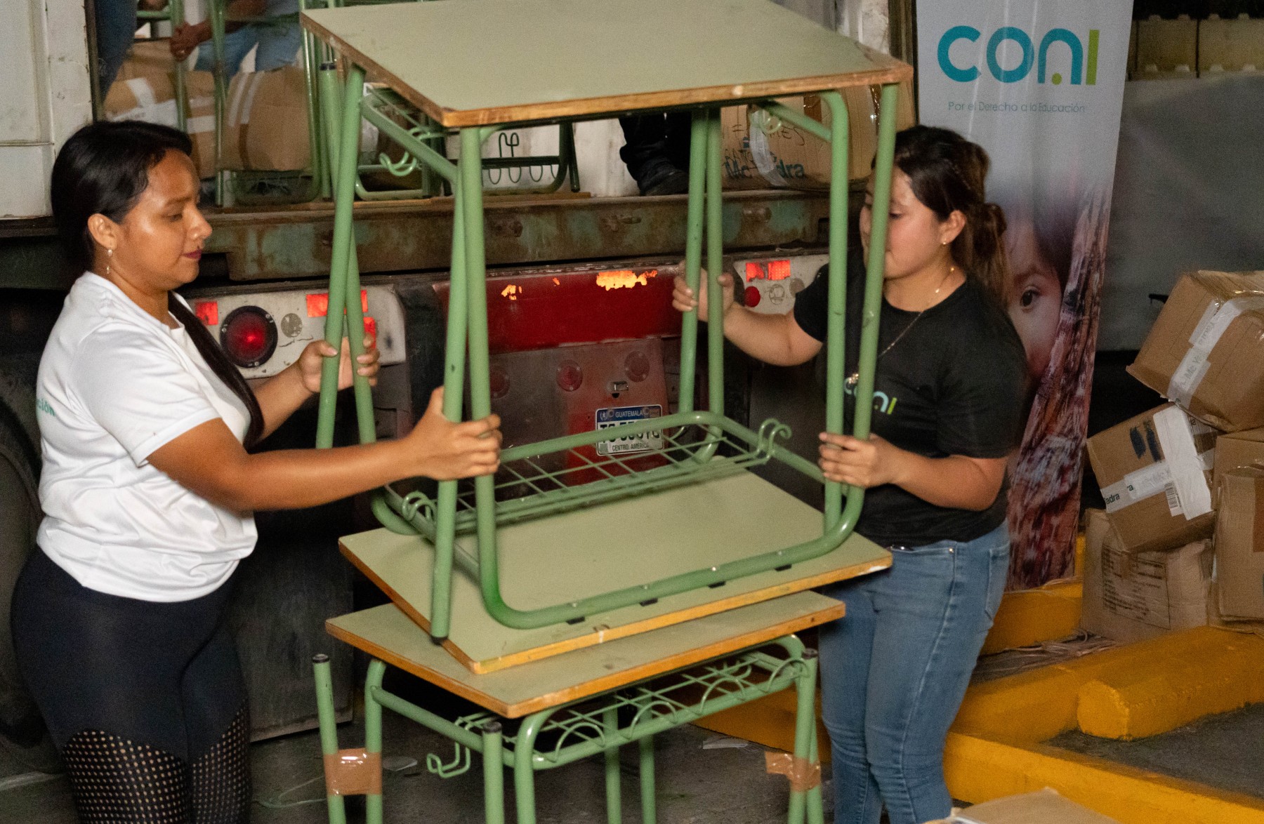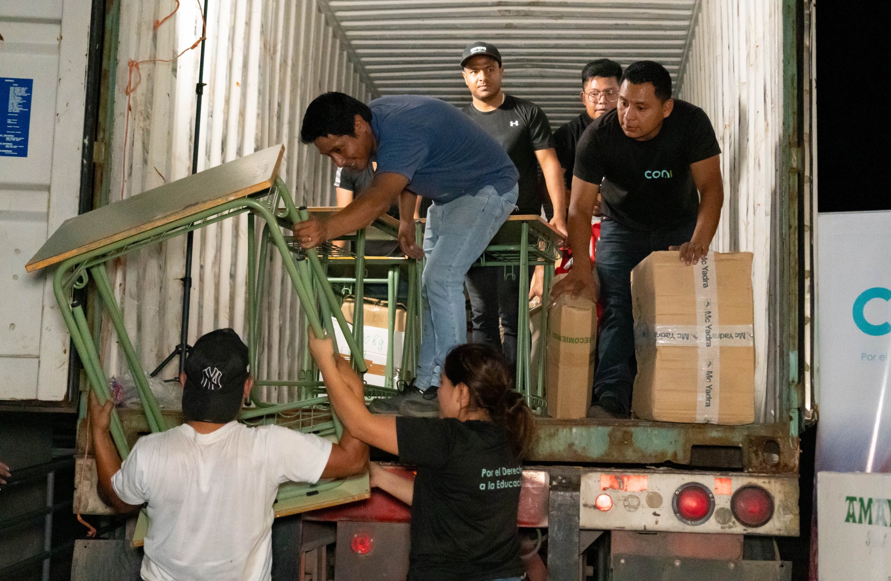 Son equipos informáticos y pupitres y sillas con las que se terminarán de montar 20 aulas tecnológicas en comunidades rurales indígenas y zonas vulnerables de 16 municipios del Alto Verapaz. Además se han cargado, porterías, juguetes y otros materiales diversos.