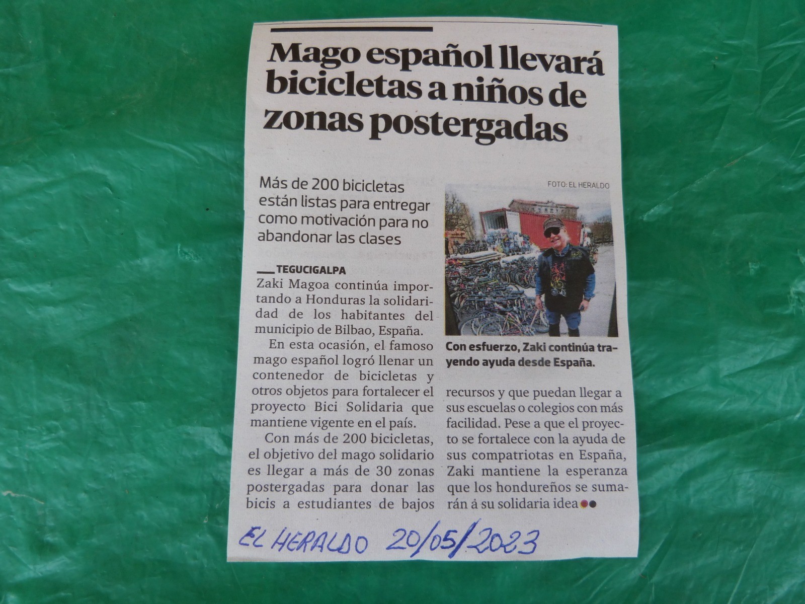 Agradecemos a Zaki la abundante información que siempre nos remite. El reparto de ilusión es su máximo empeño y que lo logre nos hace felices desde aquí. Estos testimonios son un magnífico aliciente para seguir trabajando, especialmente para el equipo de compañeros que prepara las bicis con tanta dedicación y cariño.