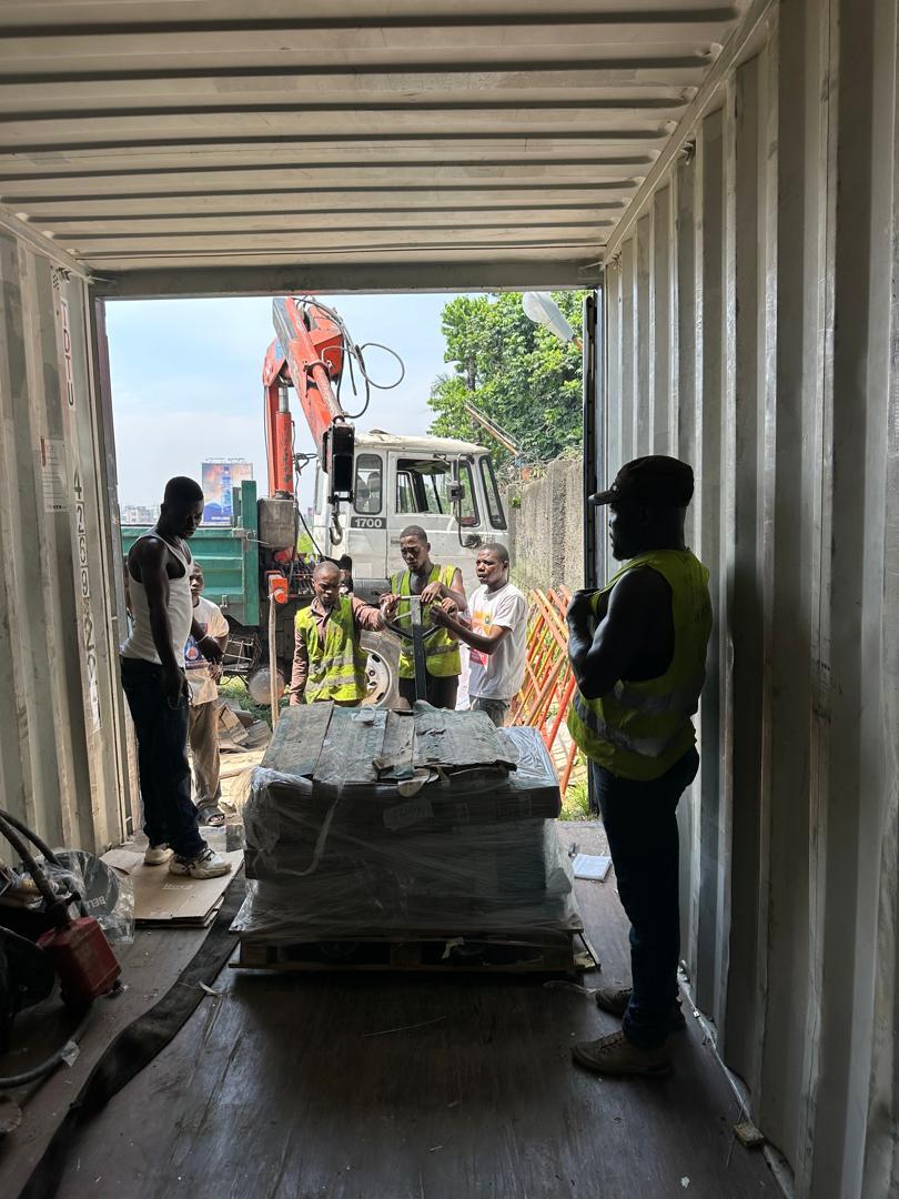 El día 27 de abril de 2024 nos llegan la buenas noticias de la descarga del contenedor de ayuda humanitaria que se mandó a la R.D. del Congo el día sábado 10 de Febrero de 2024.