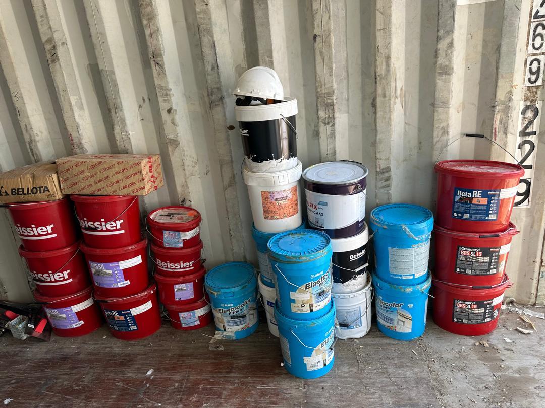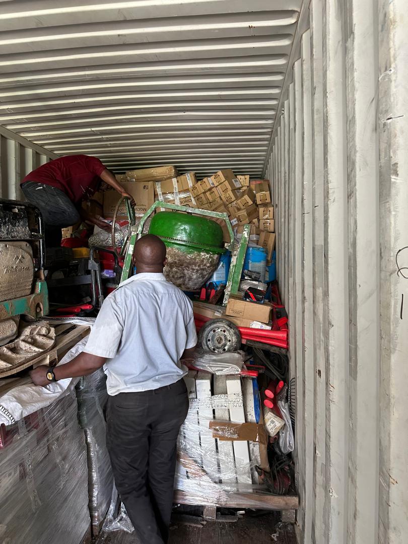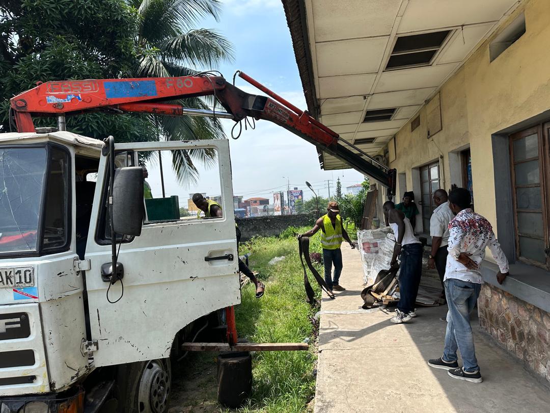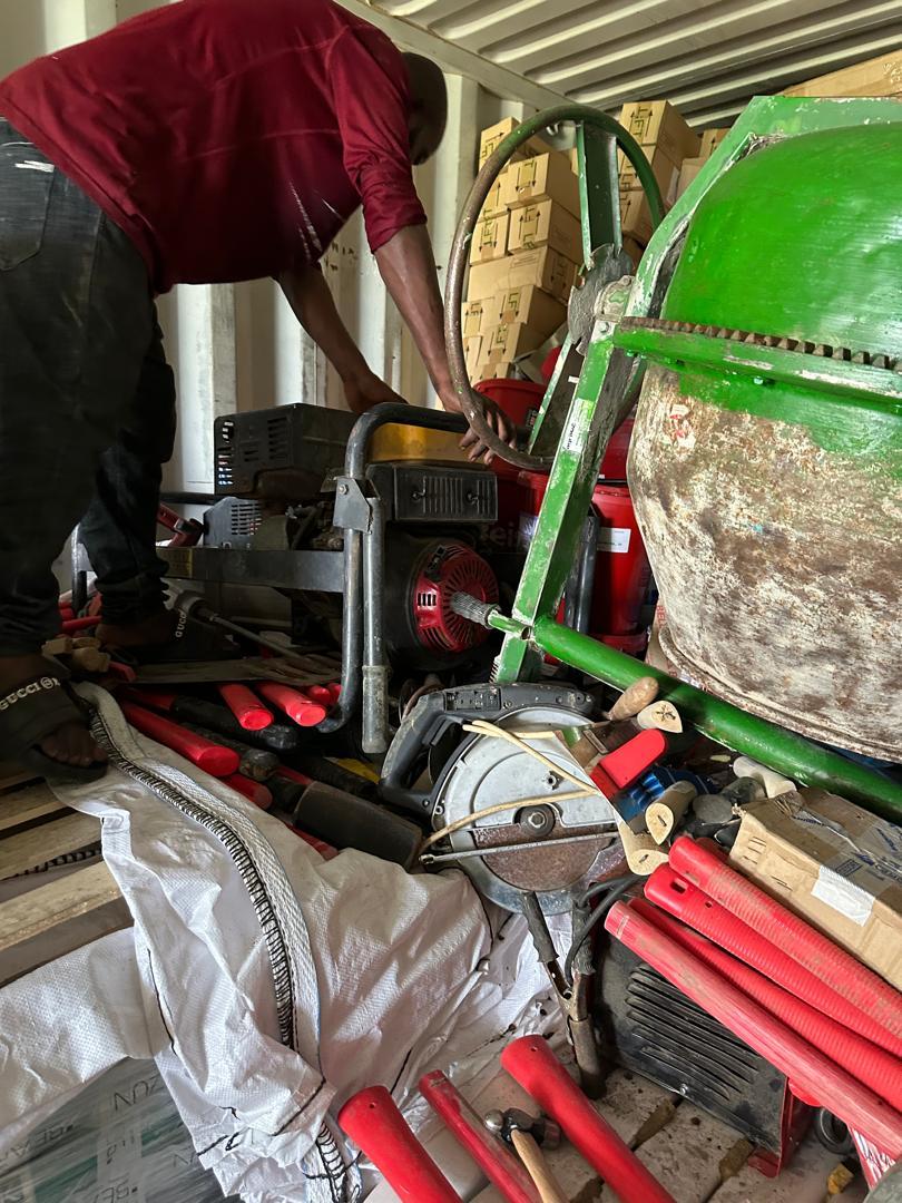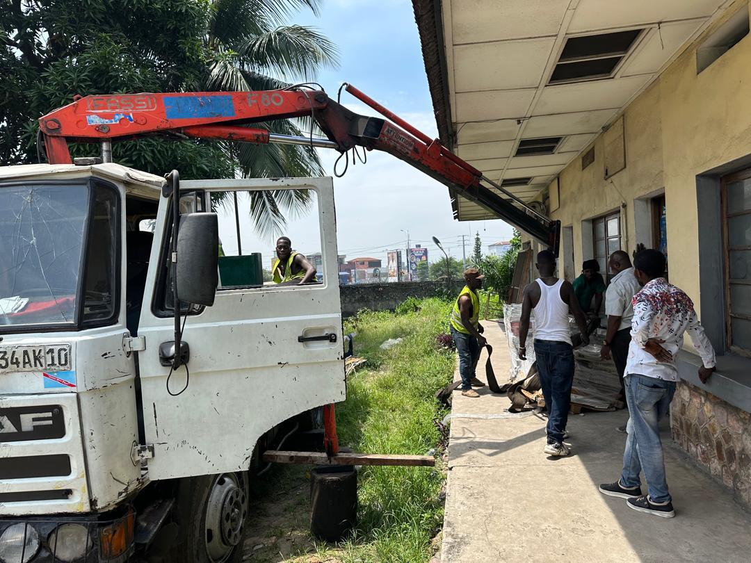 Se han descargado los materiales diversos de construcción y herramientas para colaborar en el proyecto de construcción del centro de formación integral y profesional “Divino maestro” en Kinshasa, en la Rep.Dem. del Congo.