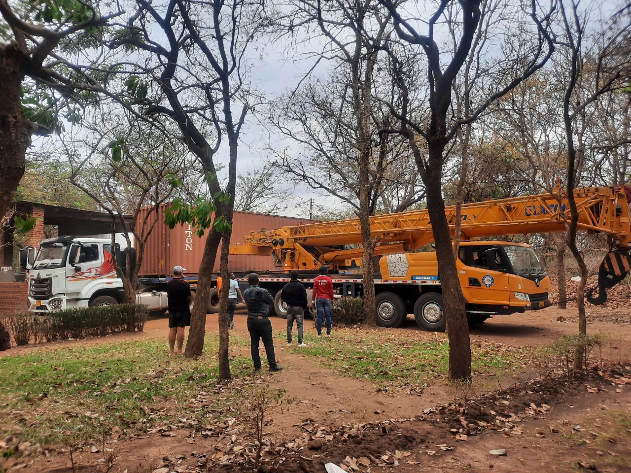 Son imágenes de la descarga del contenedor completo que se quedará en Malawi y más tarde se abrirá.