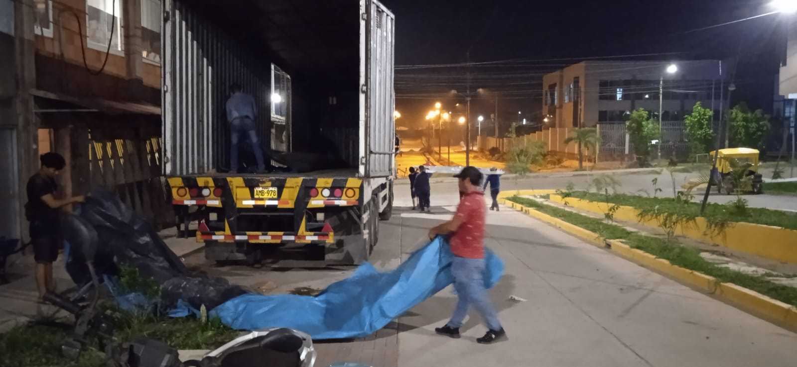 Recordamos que fue una carga muy especial ya que -entre tantos materiales enviados – cargamos una estructura metálica que se montará en la torre de la Iglesia del Cristo de los Milagros que está construyendo José Manuel Etayo.