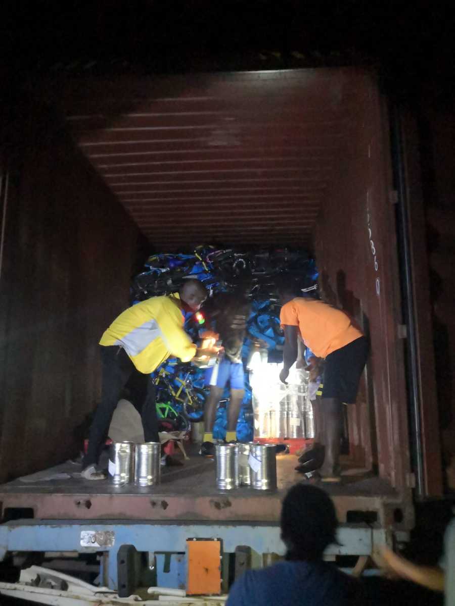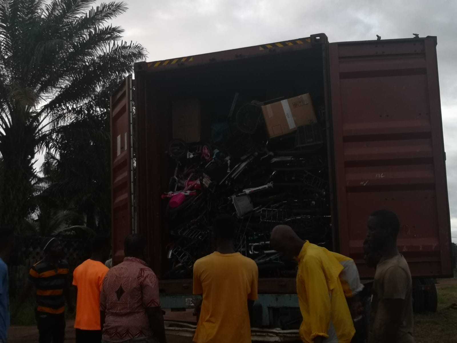 ¡Un contenedor repleto con 430 bicicletas! Un trabajo increíble de todos nuestros compañeros de la sección de bicicletas. Una tarea de meses que en este día ha dado sus frutos. Una logística perfecta para este magnífico proyecto, proyecto redondo donde nuestros compañeros Manuel y Leo pasaron 15 días enseñando a varios alumnos de la escuela de los Salesianos en Lungui a preparar y reparar las bicicletas.