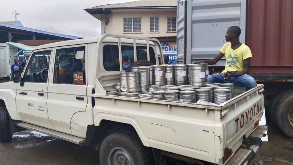 También se cargaron otros materiales para las diferentes organizaciones que trabajan en Sierra Leona: Salesianos, Clarisas, Amigos de Sierra leona, Caritas …