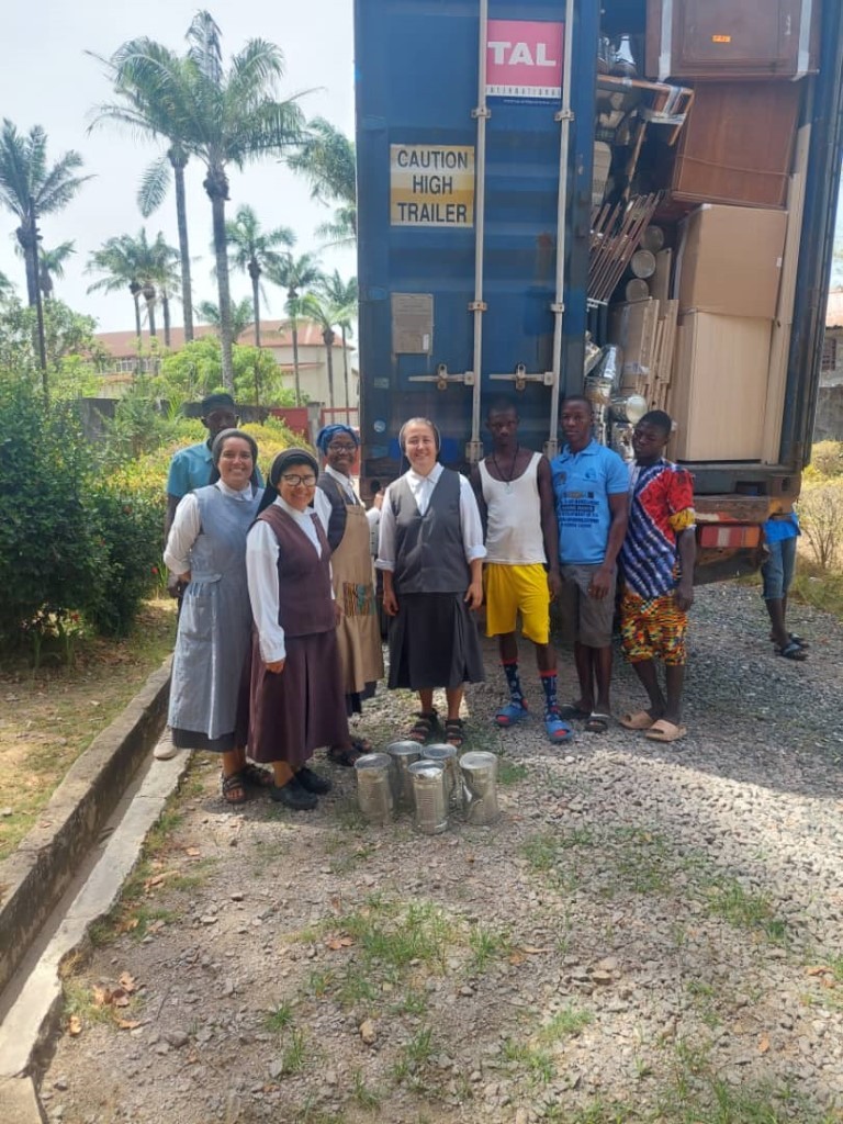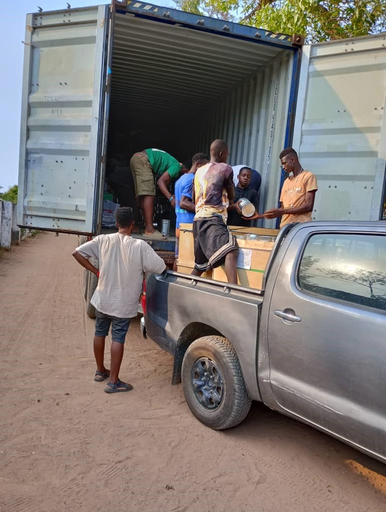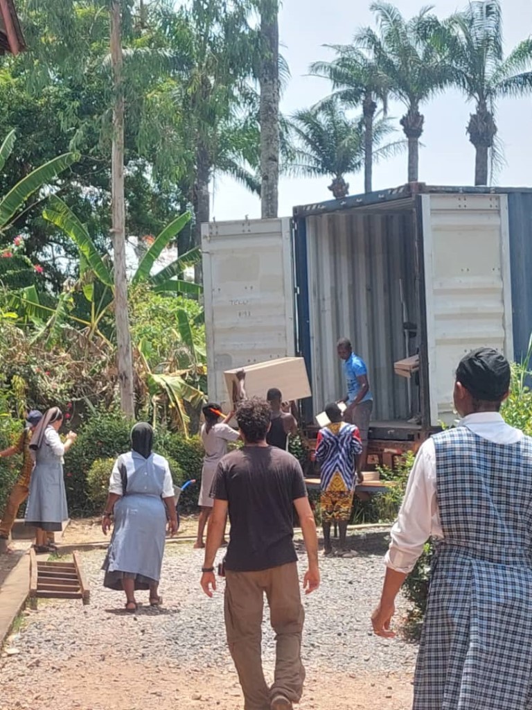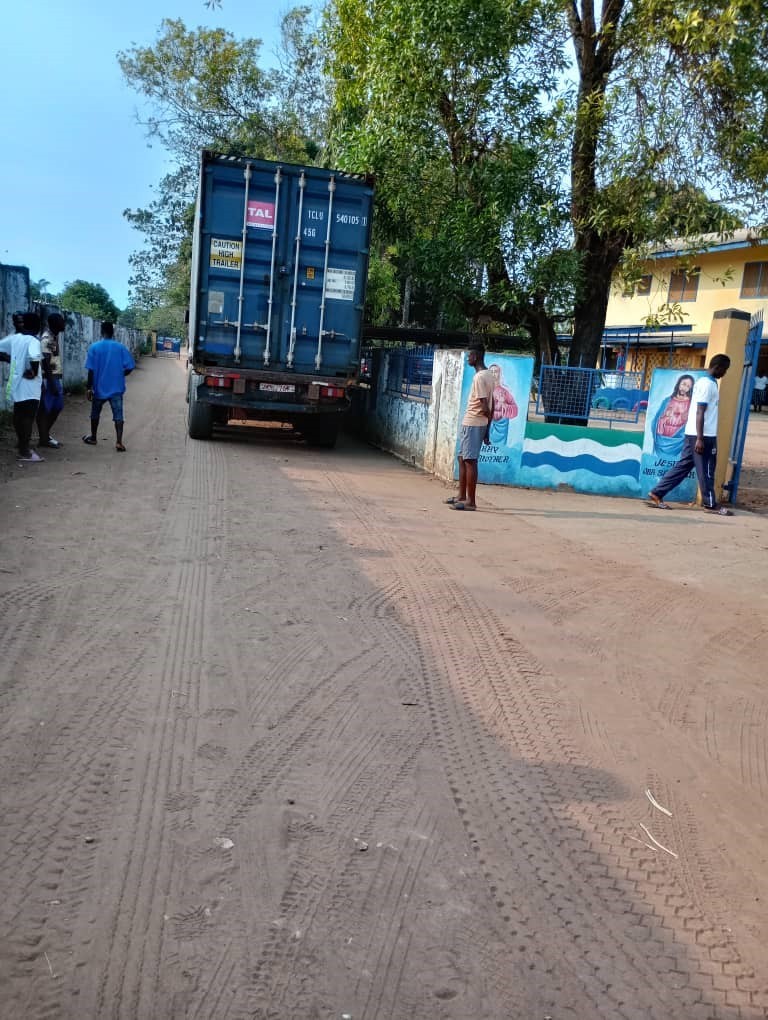 El día 27 de abril de 2024 nos llegan las excelentes noticias y un buen montón de fotos de la descarga del contenedor con destino Sierra Leona que se mandó 17 de Febrero de 2024.  Un envío compartido entre el Salesiano Antonio Gutiérrez para el que se ha cargó medio contenedor con bicicletas y materiales varios de carpintería, electricidad, herramientas, etc.,  y otro medio contenedor correspondiente a la Fundación Milla 91, que colabora con las Hermanas Misioneras de Santa Clara. Para esta ONG se envió mobiliario de diverso tipo, material sanitario, máquinas de coser y un montón de materiales más.