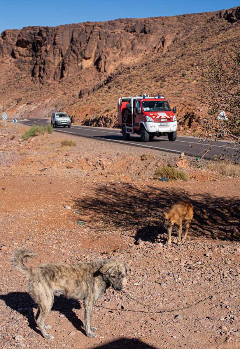 Un largo viaje con mucho tiempo de preparación logística y documentación, con víveres para ser autosuficientes y, como es habitual, con un cargamento a tope de material de protección contra incendios, material de extinción como mangueras, lanzas, o cuerdas y arneses de rescate, una desbrozadora, bombas de achique, pero también cajas de gafas de ver, un sillón de dentista, camillas y material sanitarios como mascarillas, batas, bisturís, vendas, jeringuillas…